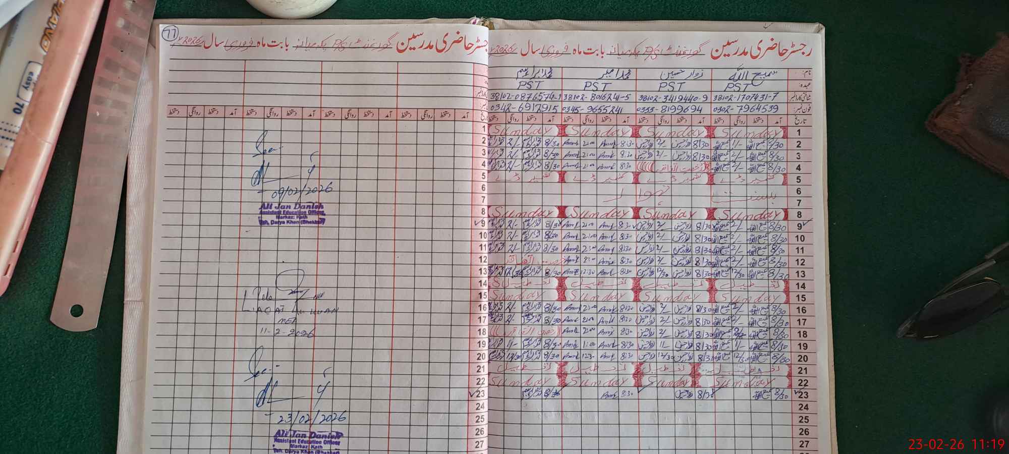 | Name: SA**** UI**** Designation: (School Headmaster's/Headmistress's) PST Phone/Cell Number: 03**** |