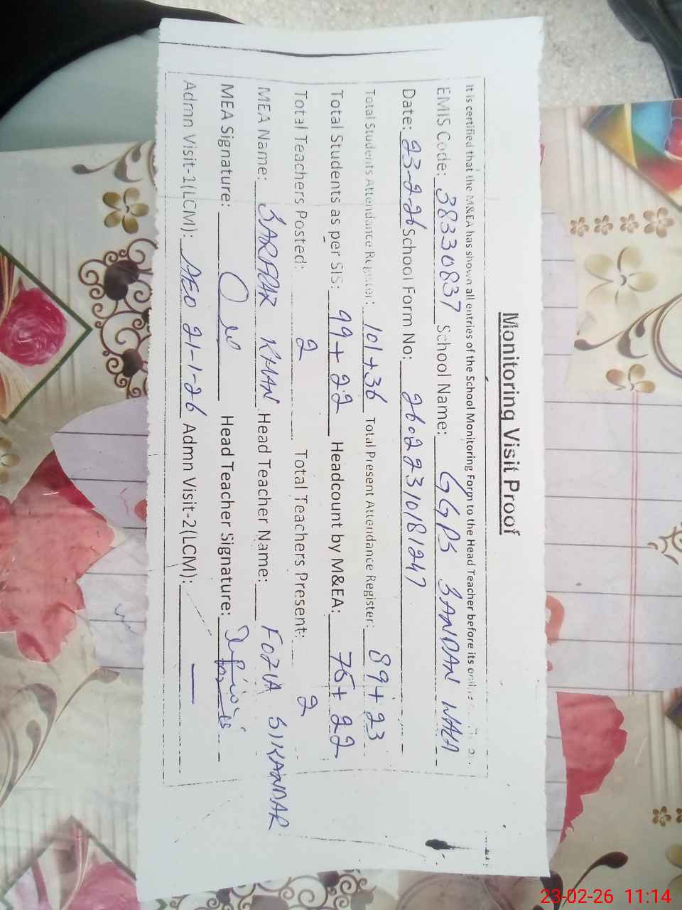 | EMIS Code: 38330837 | Name of School: GGPS SANDAN WALA | |||