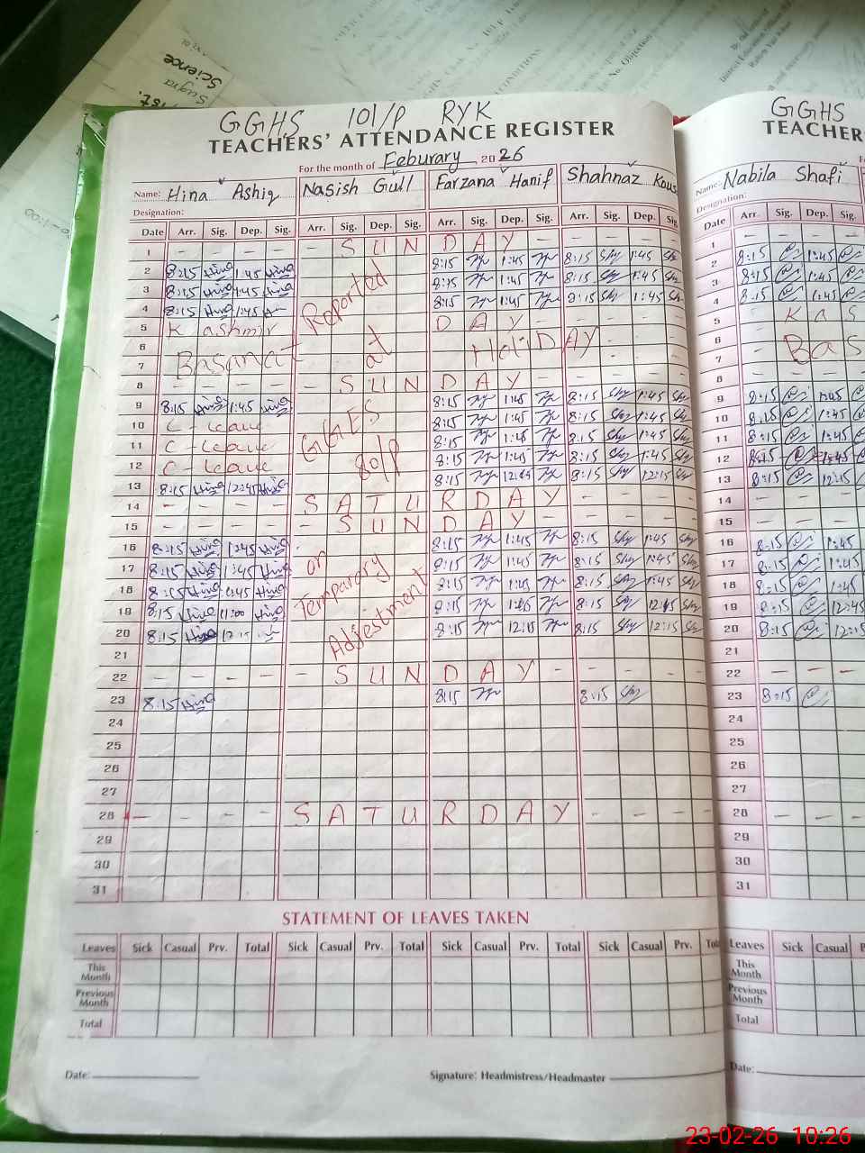 | 31**** | Ri**** Na**** | PST | Regular | 20 | 0 | 0 | 20 | 0 | 0 | 0 | 0 | 0 | Maternity |