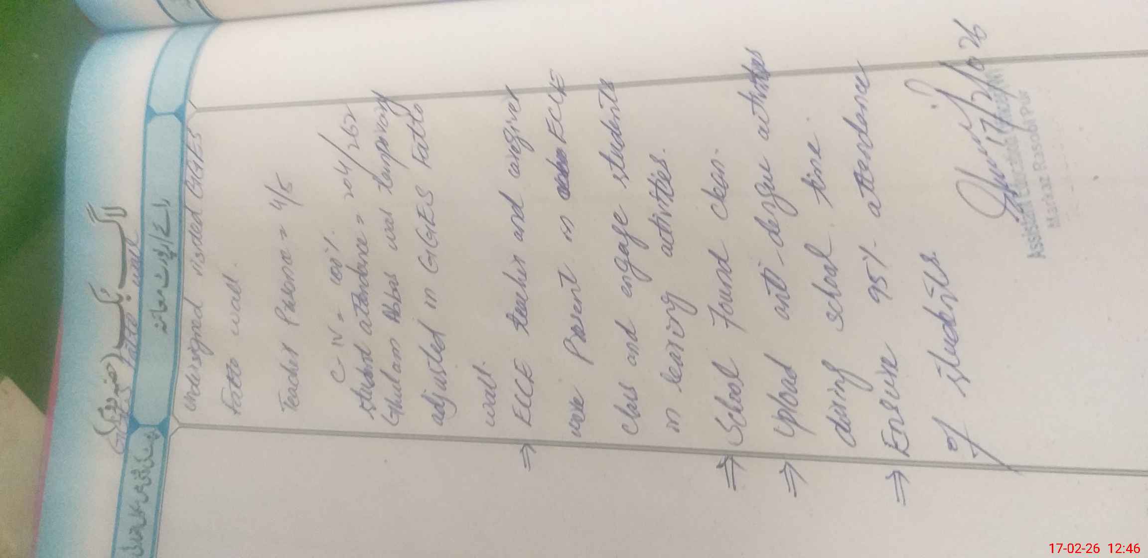 | Attendance Register | Head Teacher | MEA with School | Visit Proof |