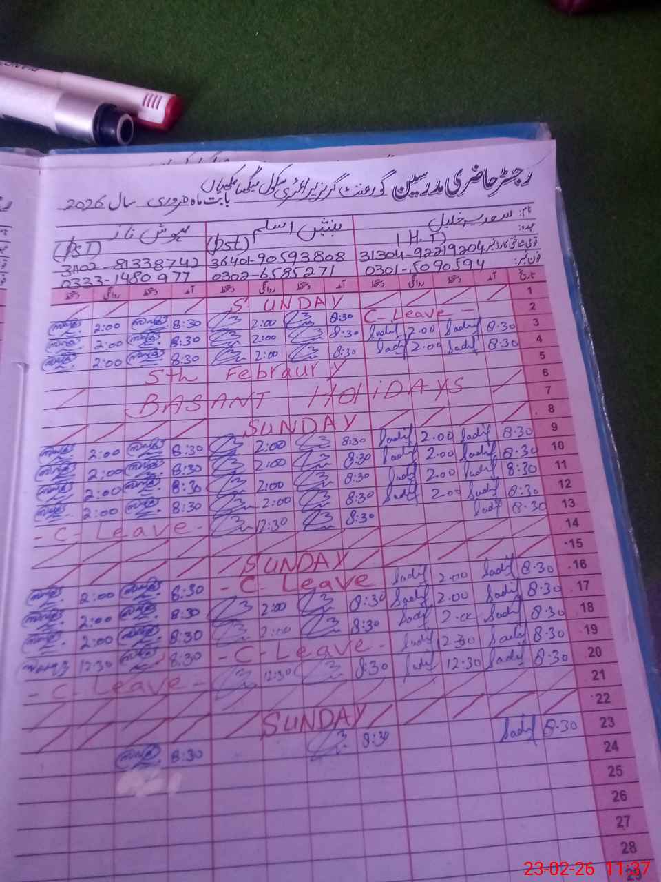 | Name: Sa**** Kh**** Designation: (School Headmaster's/Headmistress's) PST Phone/Cell Number: 03**** |