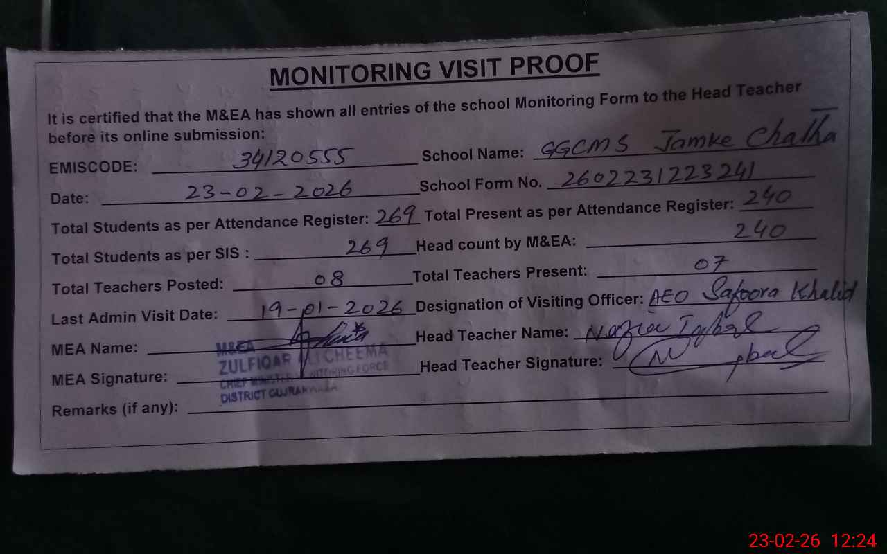 | EMIS Code: 34120555 | Name of School: GGCMS JAMKE CHATHA | |||