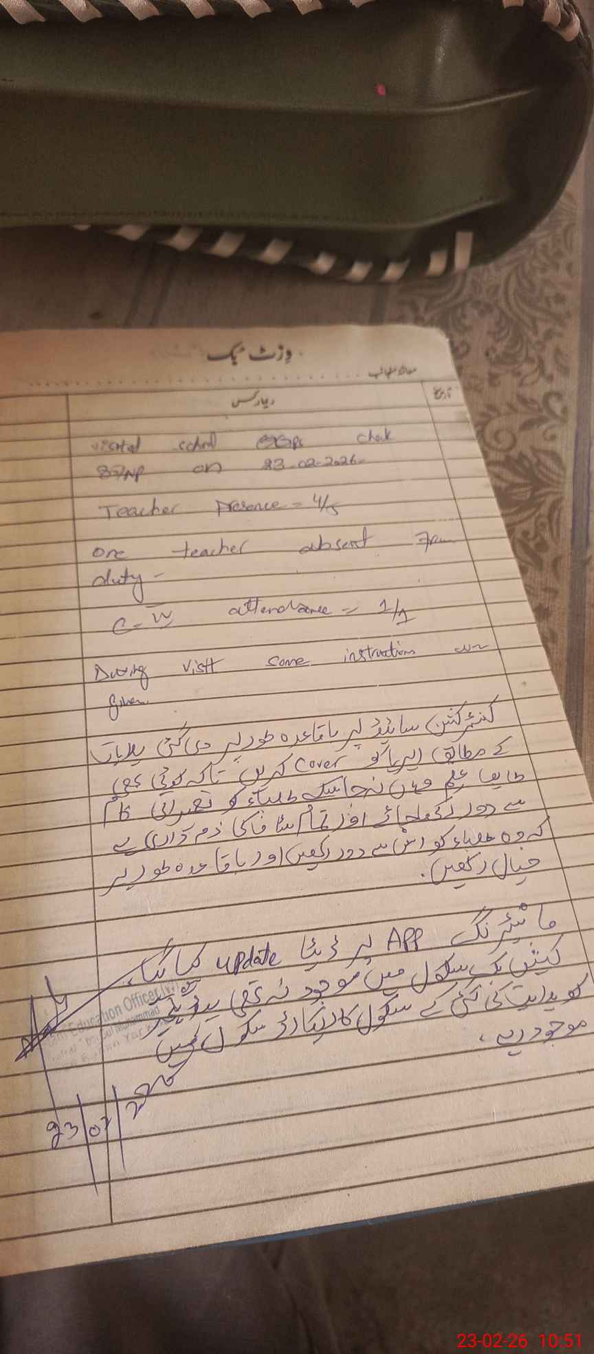 | Attendance Register | Head Teacher | MEA with School | Visit Proof |