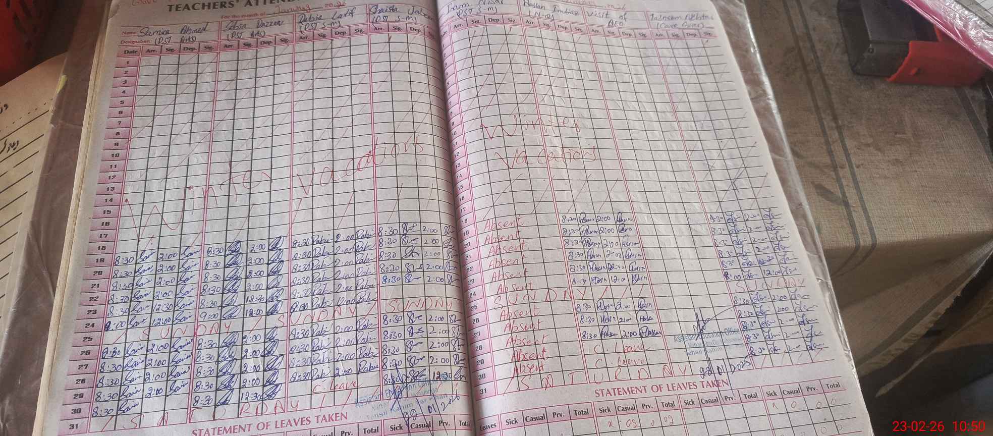 | Leave | Duty | Absent | Maternity | Medical | Ex- Pak |