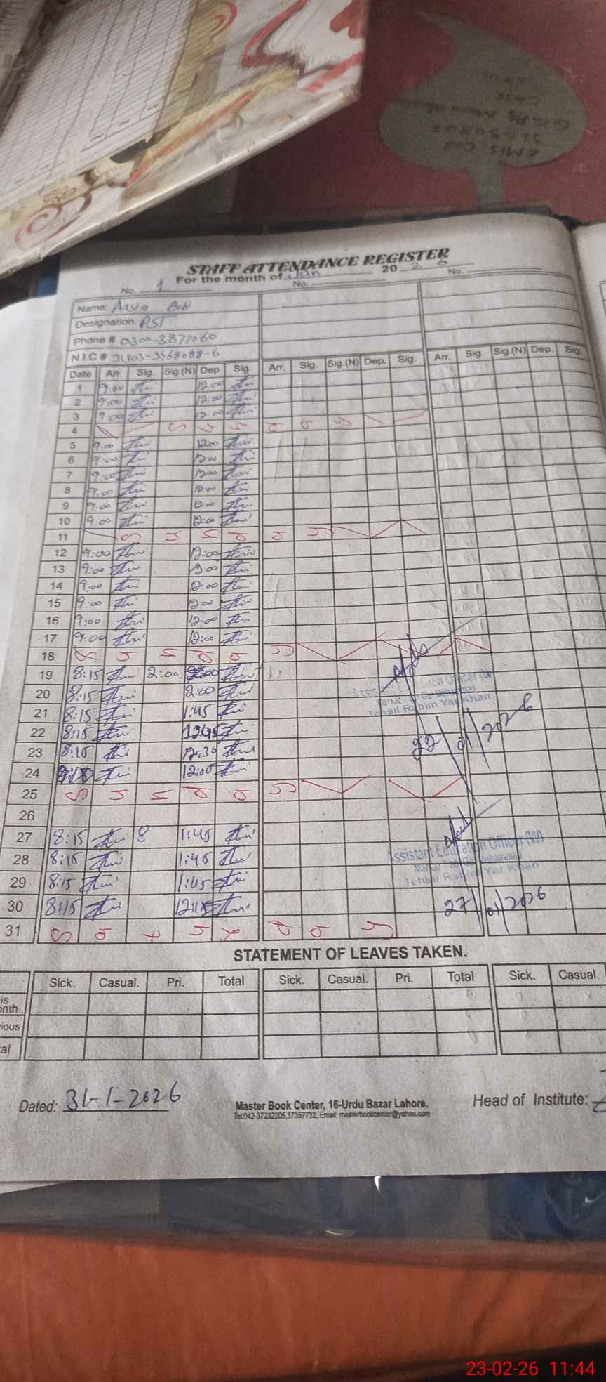 | Name: As**** Bi**** Designation: (School Headmaster's/Headmistress's) ESE Phone/Cell Number: 03**** |