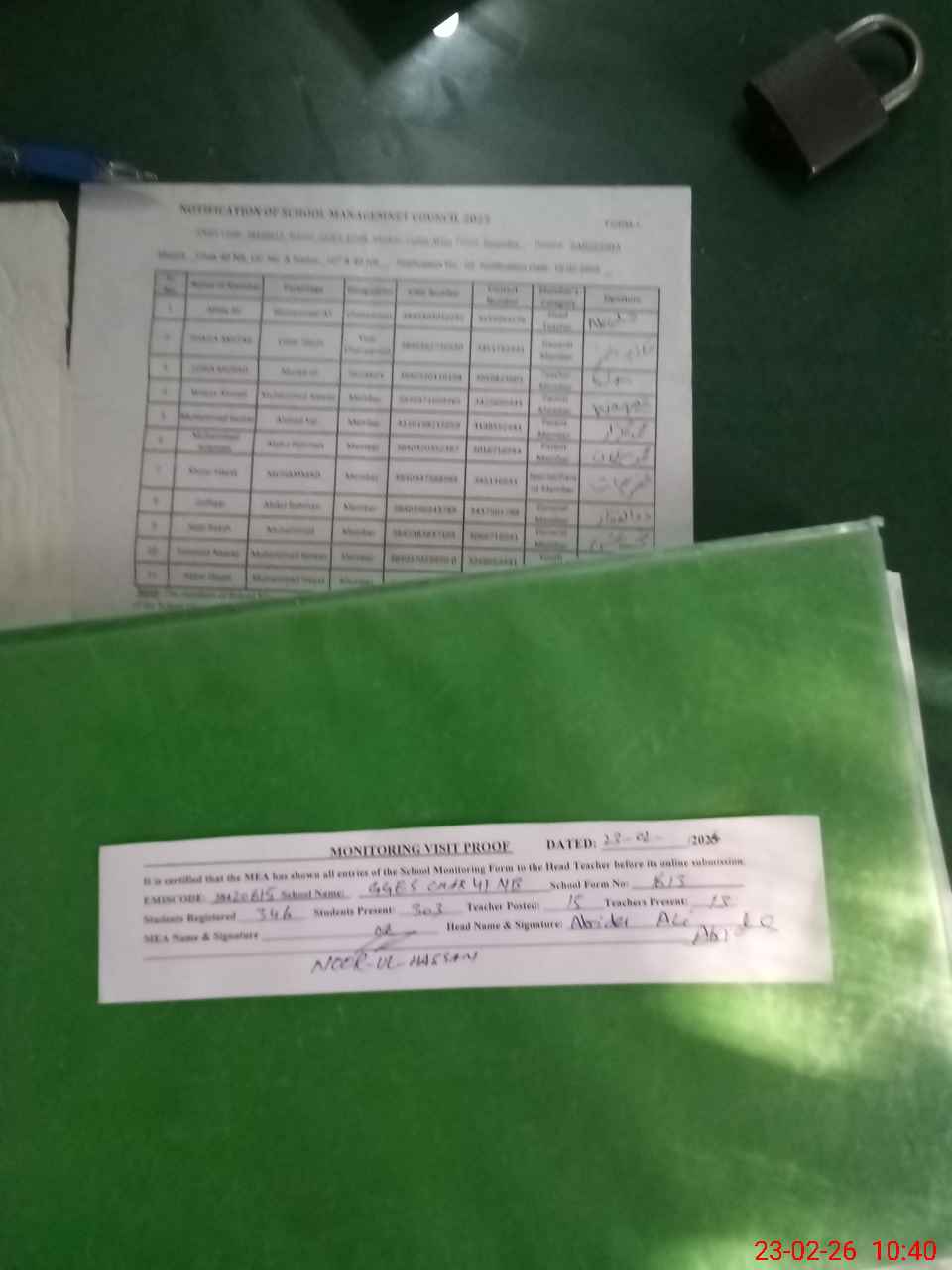 | Certified that this School was Inspected by the Undersigned MEA/DMO Today and the Information Stated Above is as Per Record. | |||||