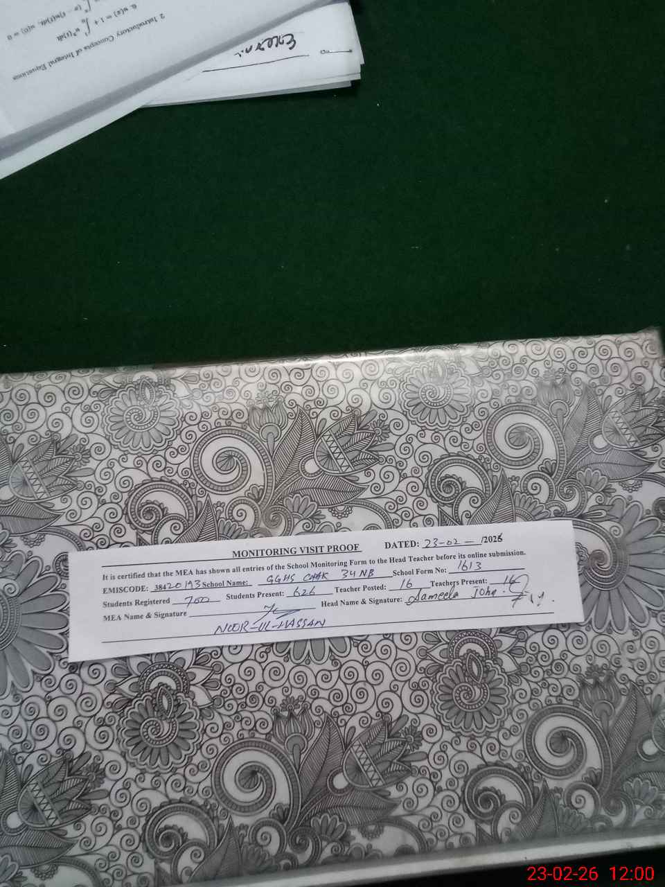 | EMIS Code: 38420193 | Name of School: GGHS CHAK NO.34 NB | |||