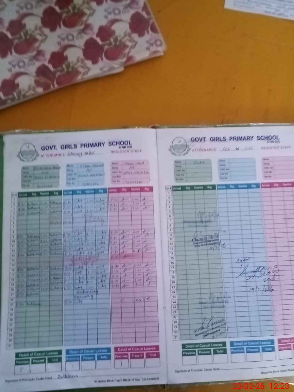 | Name: RU**** PE**** Designation: (School Headmaster's/Headmistress's) PST Phone/Cell Number: 03**** |