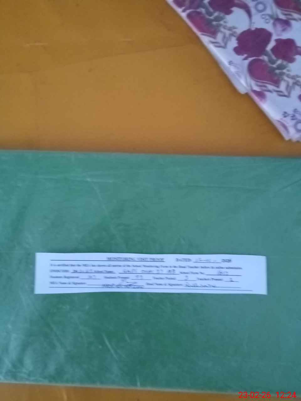 | Attendance Register | Head Teacher | MEA with School | Visit Proof |