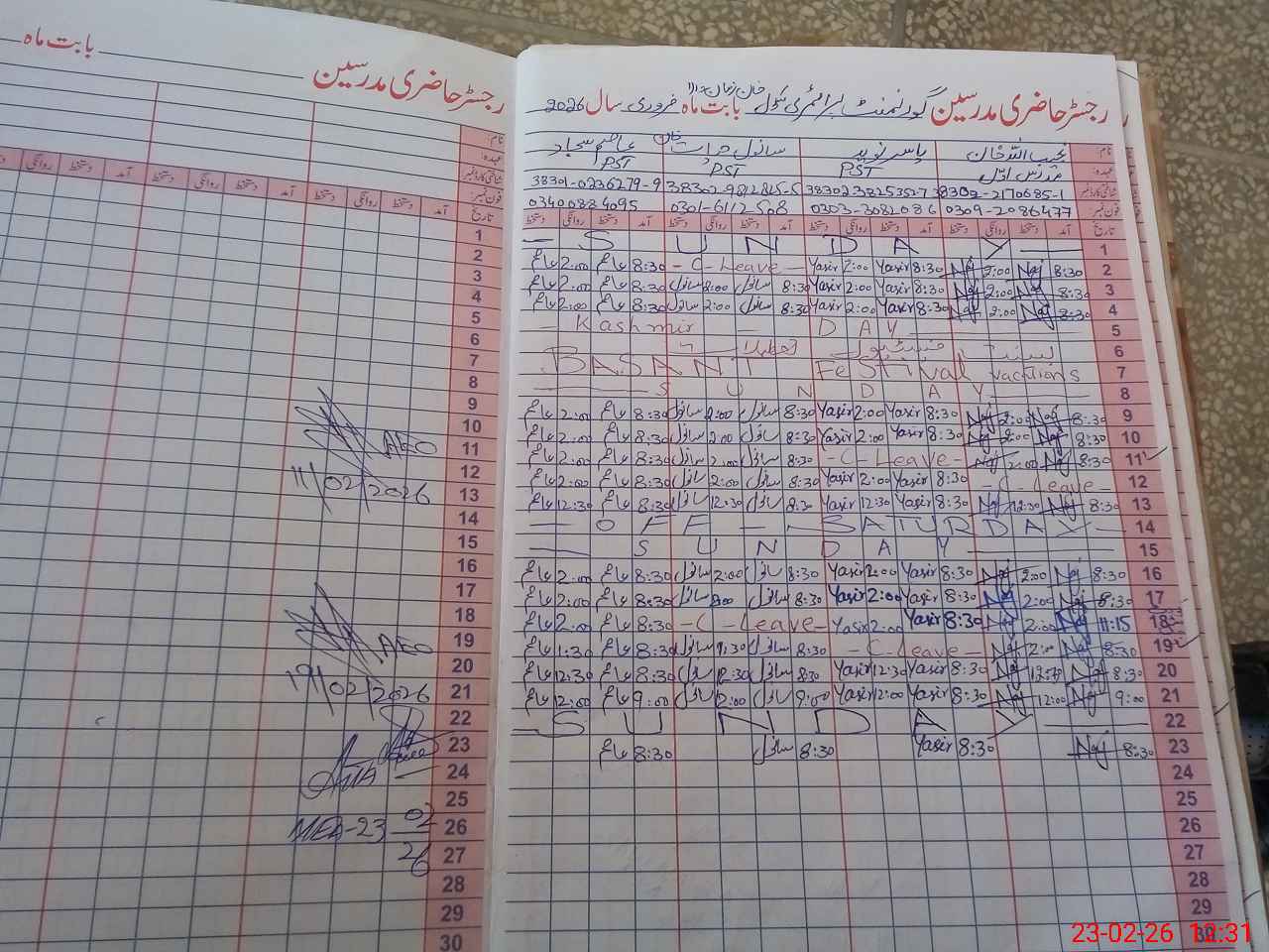 | Name: Na**** Kh**** Designation: (School Headmaster's/Headmistress's) PST Phone/Cell Number: 03**** |