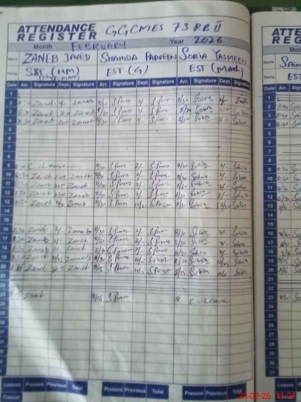 | Leave | Duty | Absent | Maternity | Medical | Ex- Pak |
