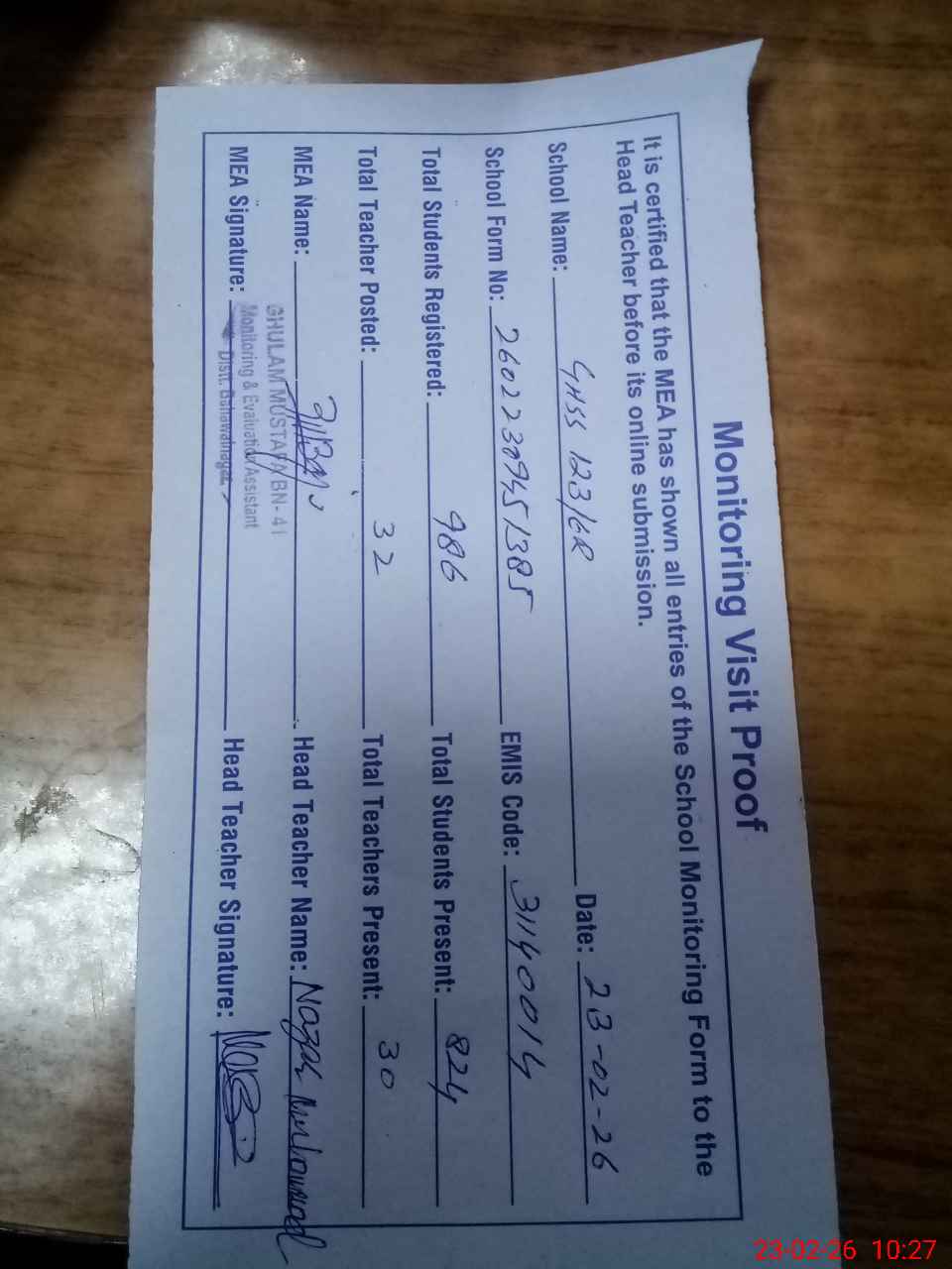 | EMIS Code: 31140014 | Name of School: GHSS CHAK 123/6-R | |||