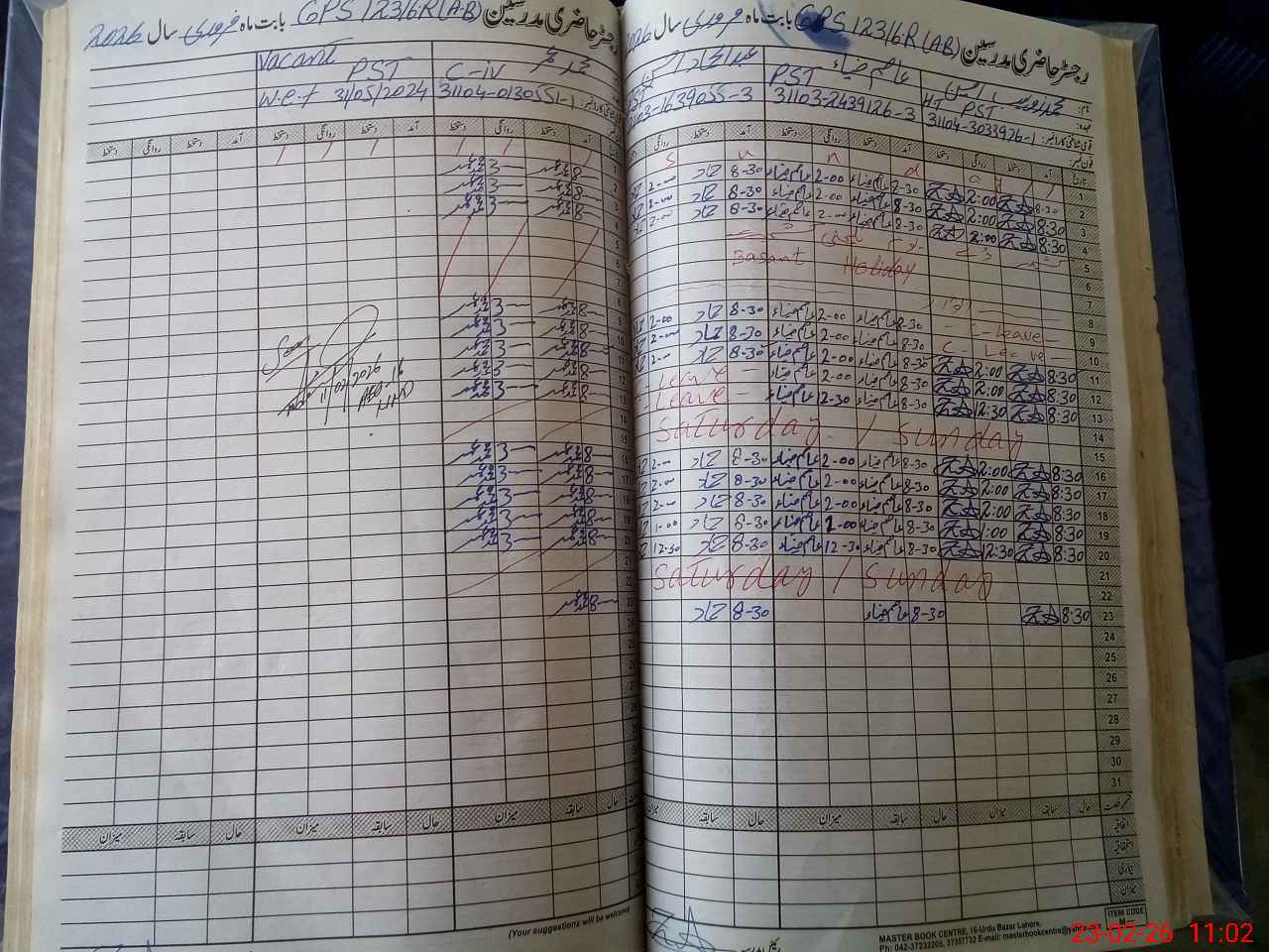 | CNIC | Full Name | Designation | R/C | Absence During Last Calender Month |