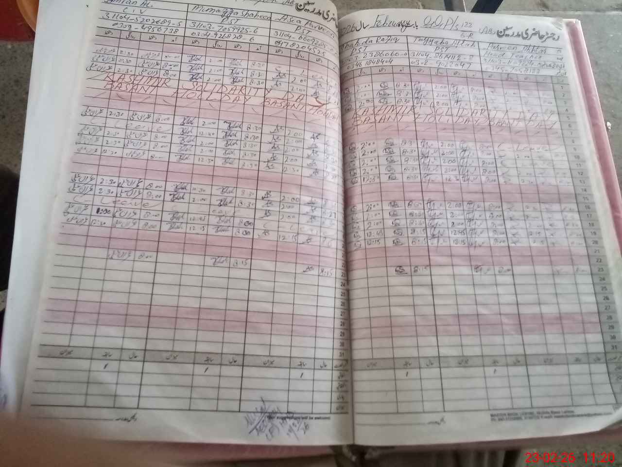 | CNIC | Full Name | Designation | R/C | Absence During Last Calender Month |