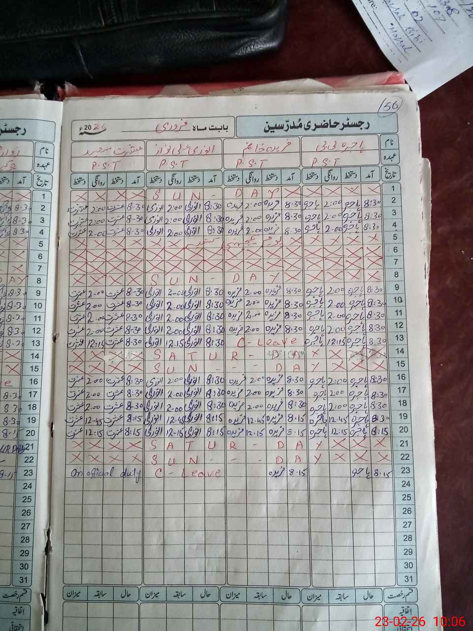 | 38**** | An**** Al**** Na**** | PST Science/Maths | Regular | 0 | 0 | 0 | 0 | 0 | 0 | 0 | 0 | 0 | Casual |