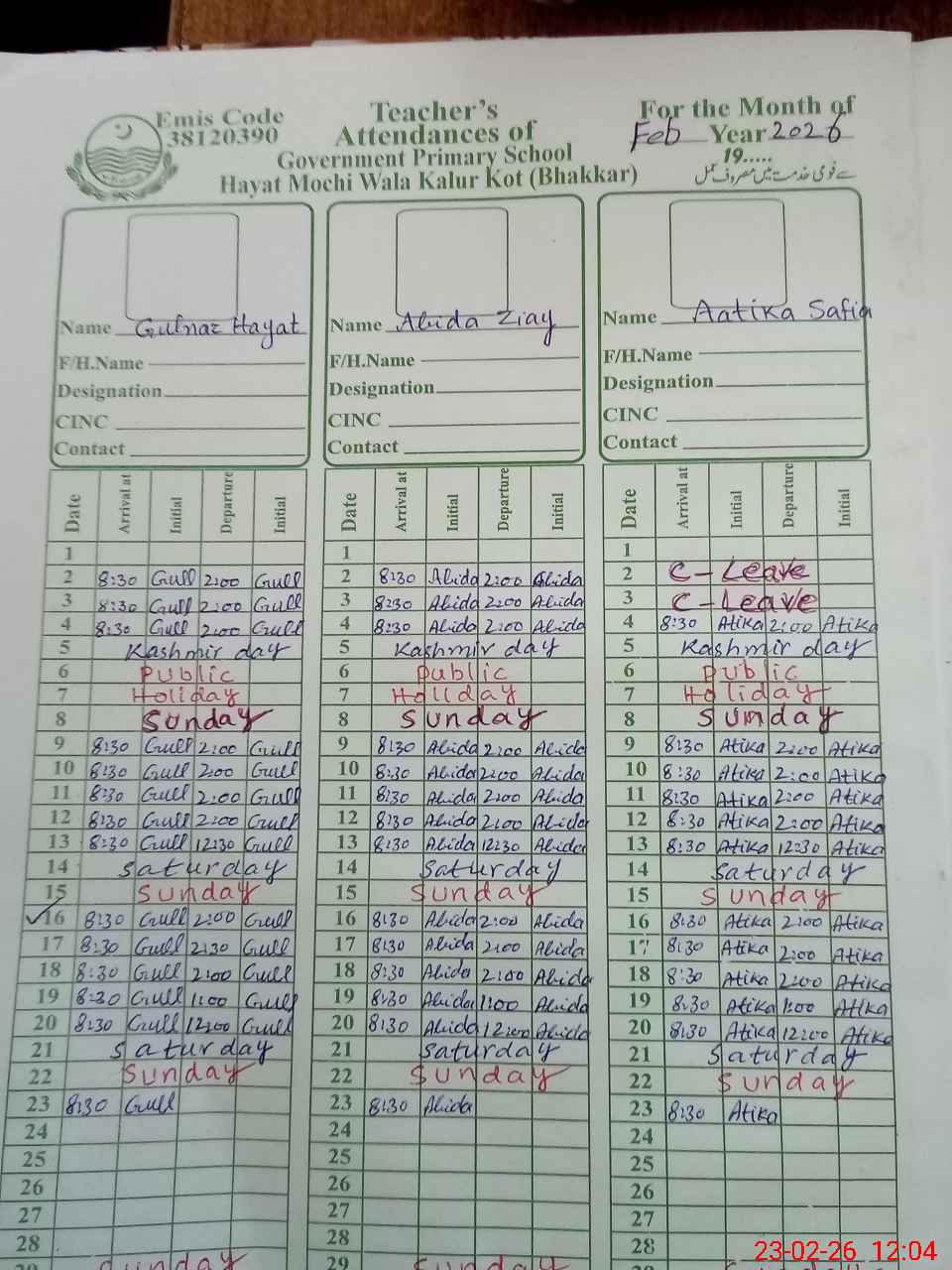 | EMIS Code: 38120390 | Name of School: GPS HAYAT MOCHI WALA | |||