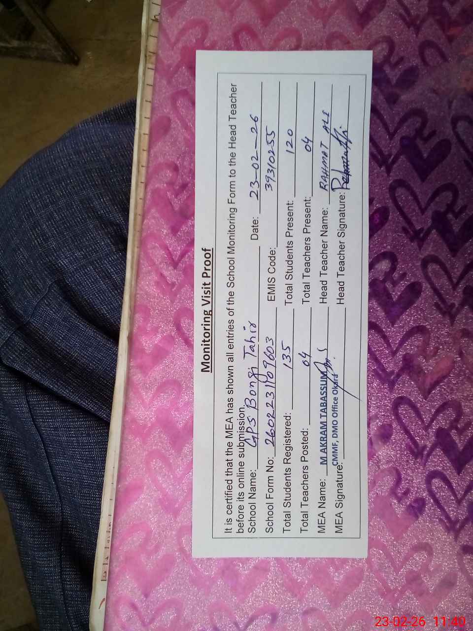 | Certified that this School was Inspected by the Undersigned MEA/DMO Today and the Information Stated Above is as Per Record. | |||||