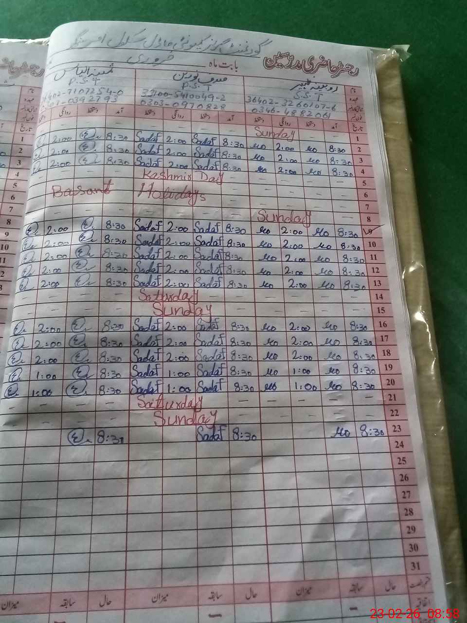 | Name: RO**** ZA**** Designation: (School Headmaster's/Headmistress's) SST (GENERAL) Phone/Cell Number: 03**** |