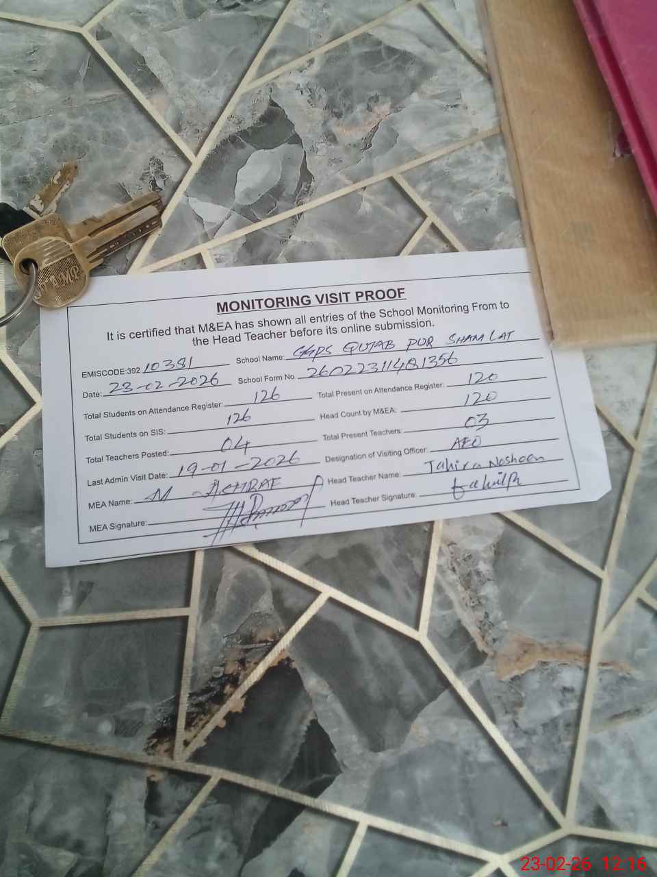 | EMIS Code: 39210381 | Name of School: GGPS QUTAB PUR SHAM LAT | |||