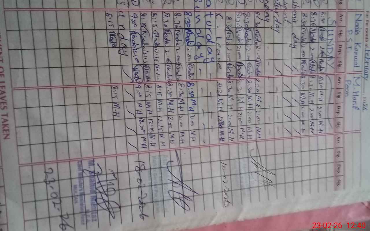 | CNIC | Full Name | Designation | R/C | Absence During Last Calender Month |