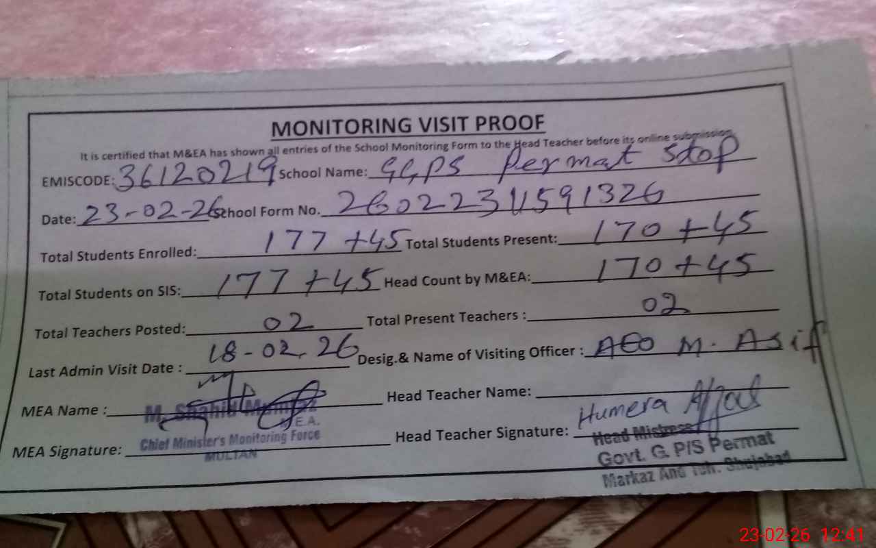 | EMIS Code: 36120219 | Name of School: GGPS PARMAT STOP MUZA HALALWAJA | |||