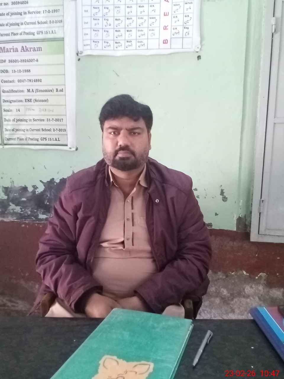 | Name: TA**** ME**** Designation: (School Headmaster's/Headmistress's) HEADMASTER Phone/Cell Number: 03**** |