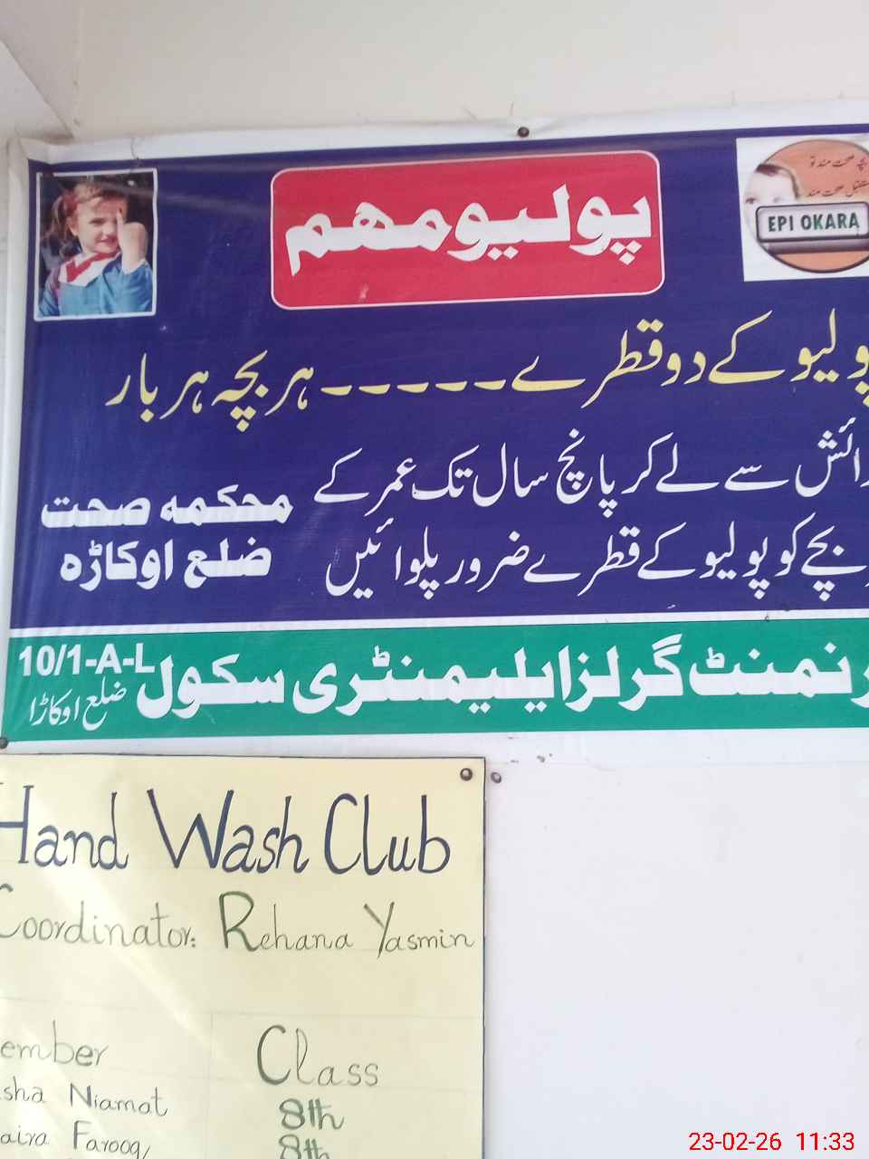 | District: OKARA | Tehsil: RENALA KHURD | Markaz: AKHTAR ABAD - FEMALE | Level: Middle | |