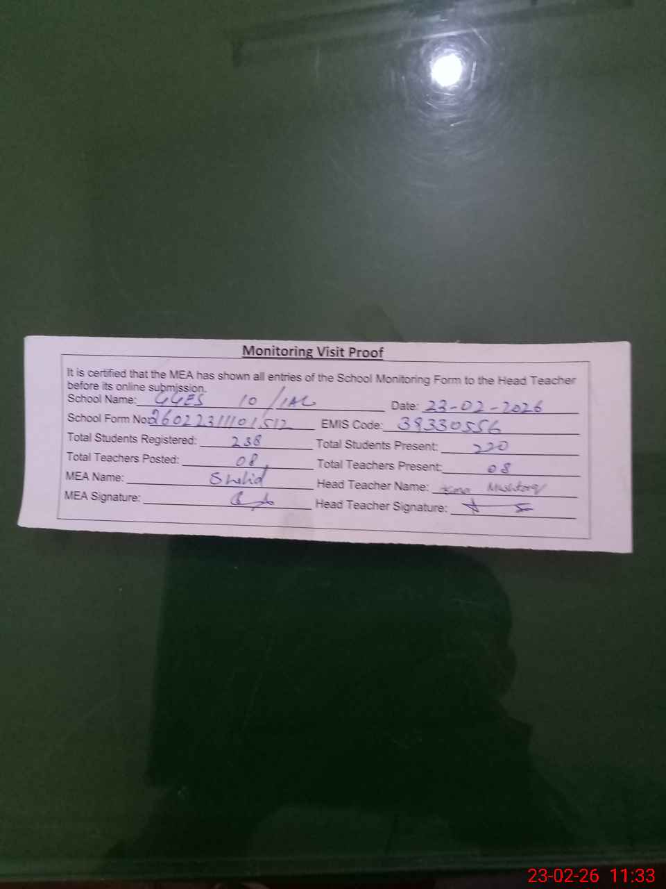 | Certified that this School was Inspected by the Undersigned MEA/DMO Today and the Information Stated Above is as Per Record. | |||||