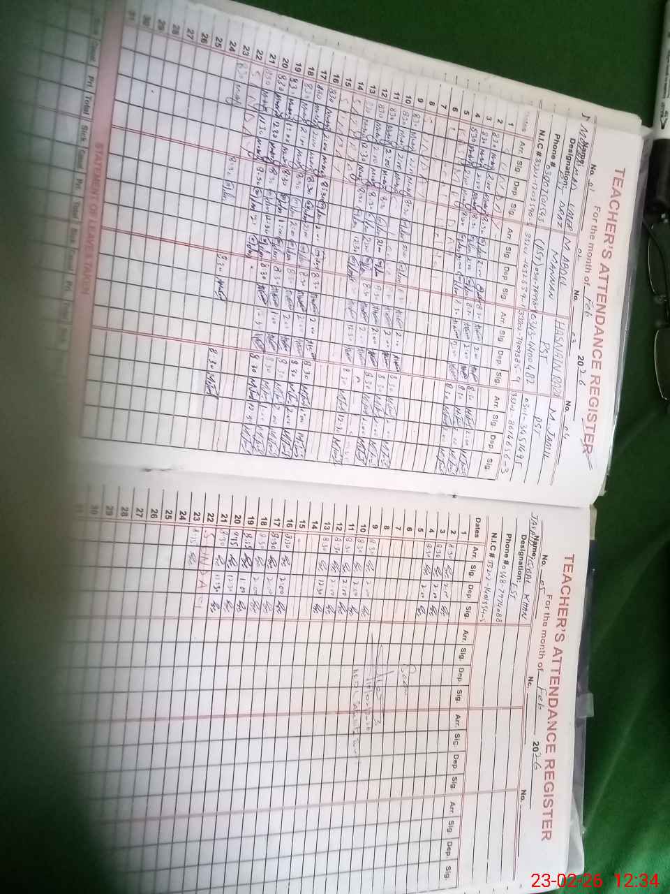 | CNIC | Full Name | Designation | R/C | Absence During Last Calender Month |