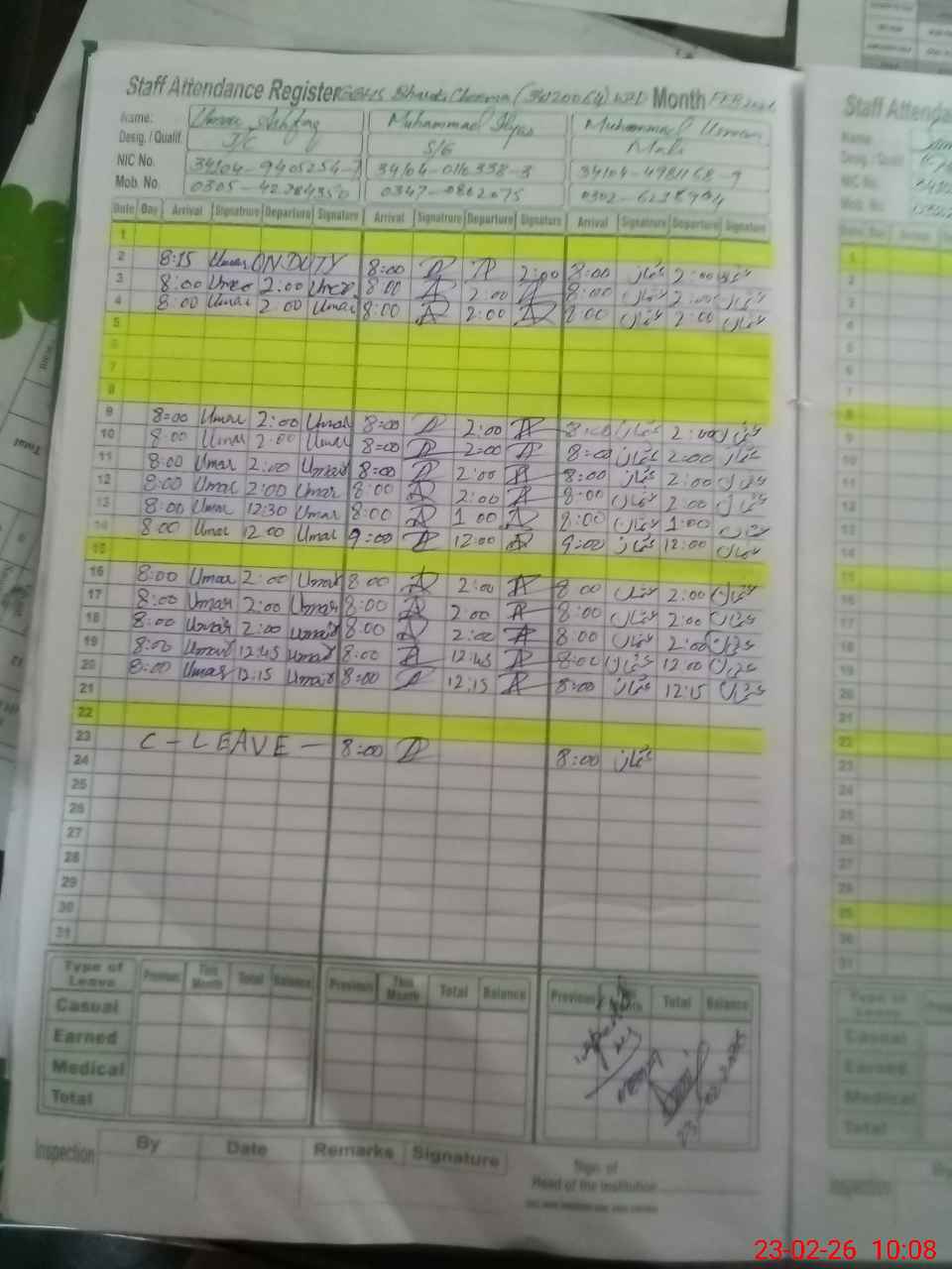 | 34**** | Sa**** | HEADMASTER | Regular | 0 | 0 | 0 | 0 | 0 | 0 | 0 | 0 | 0 | Absent (Un-Authorized) |