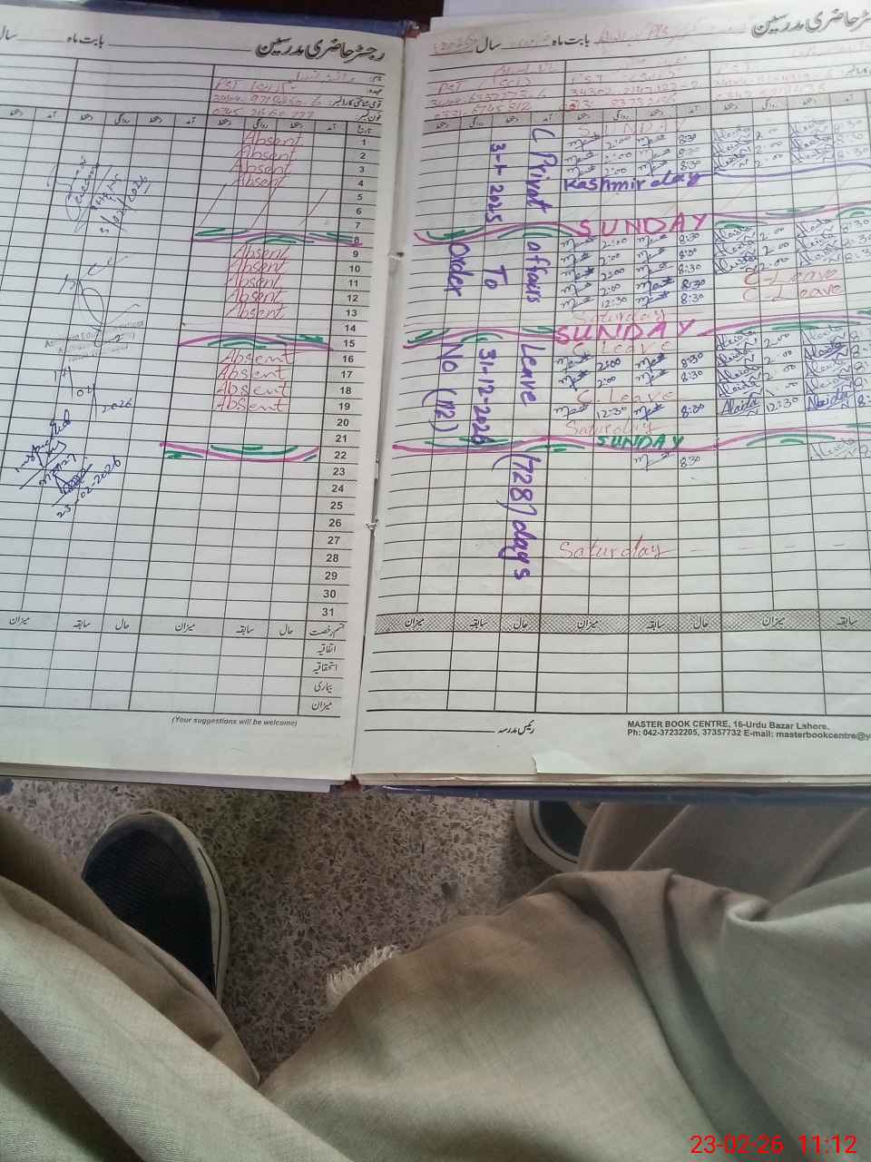 | CNIC | Full Name | Designation | R/C | Absence During Last Calender Month |