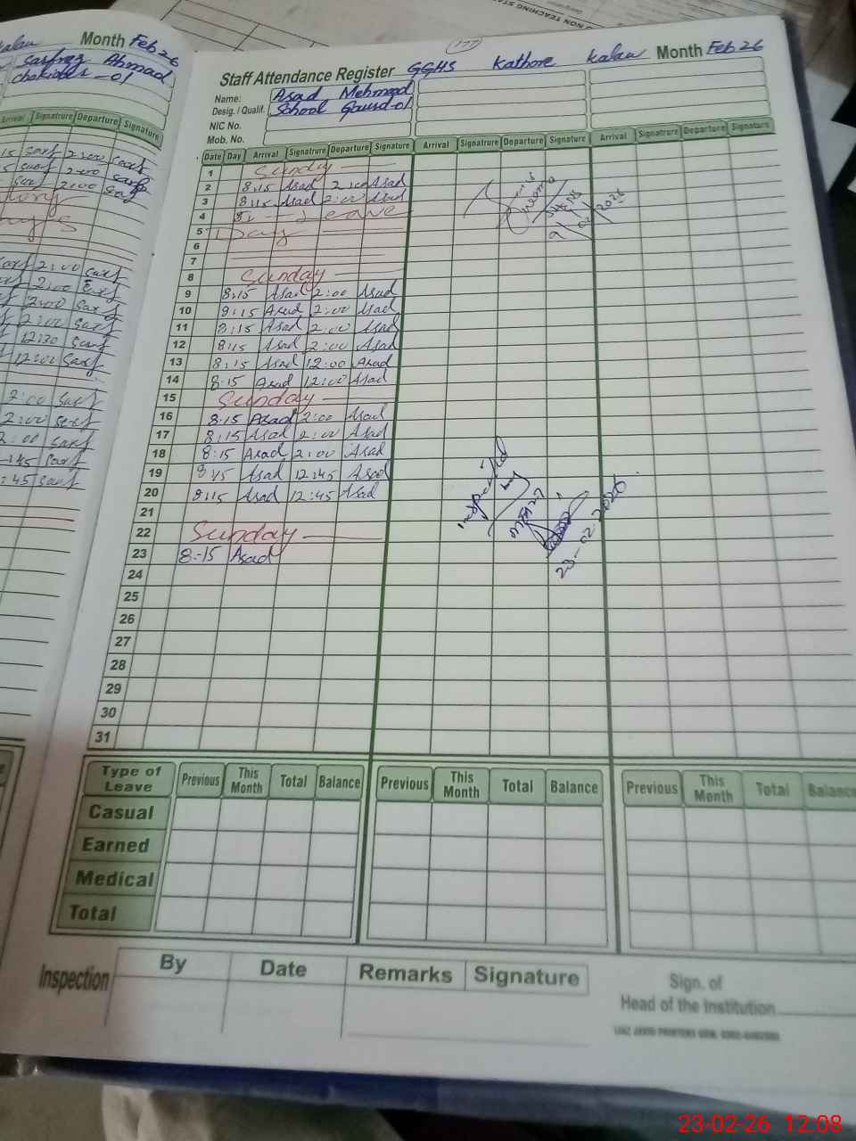 | Certified that this School was Inspected by the Undersigned MEA/DMO Today and the Information Stated Above is as Per Record. | |||||