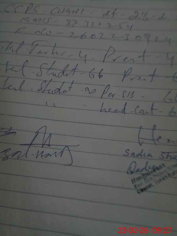 | Name: Sa**** Sh**** Designation: (School Headmaster's/Headmistress's) PST Phone/Cell Number: 03**** |