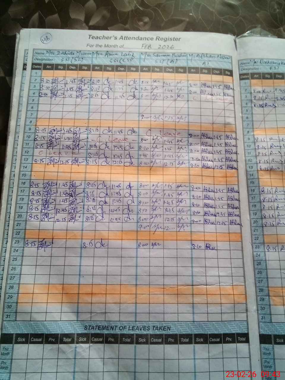 | Leave | Duty | Absent | Maternity | Medical | Ex- Pak |