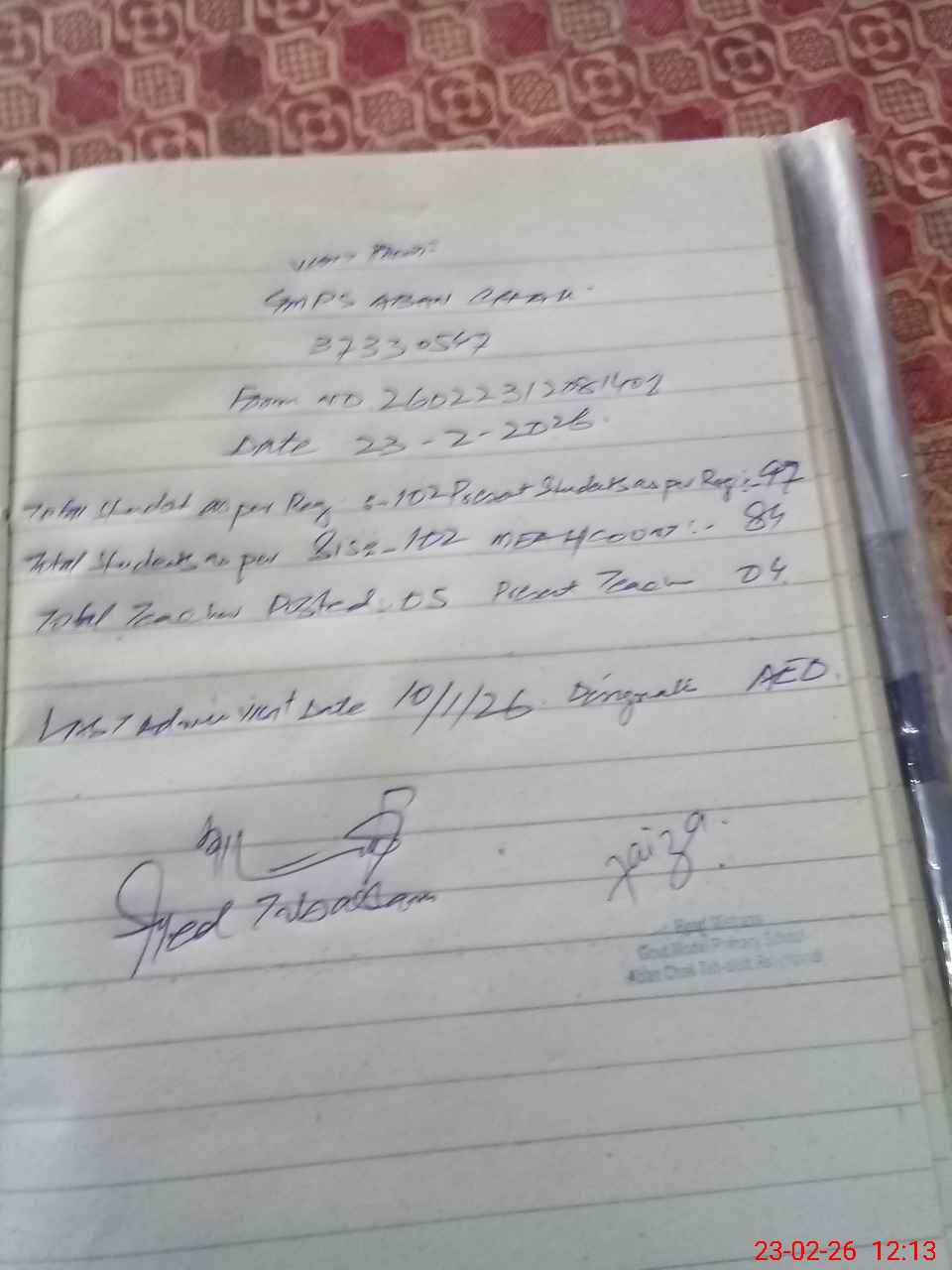 | EMIS Code: 37330547 | Name of School: GMPS ABAN CHAK | |||