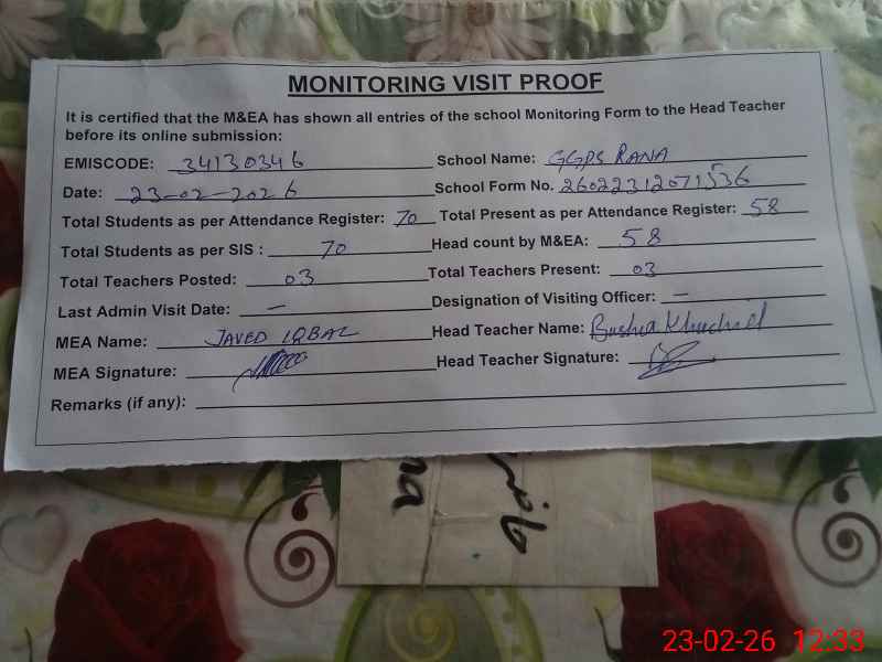 | EMIS Code: 34130346 | Name of School: GGPS RANA | |||
