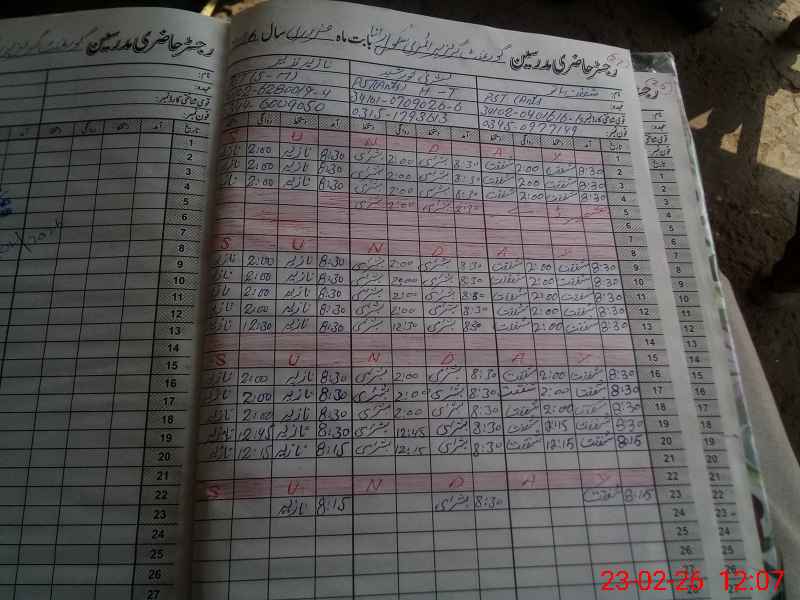 | CNIC | Full Name | Designation | R/C | Absence During Last Calender Month |