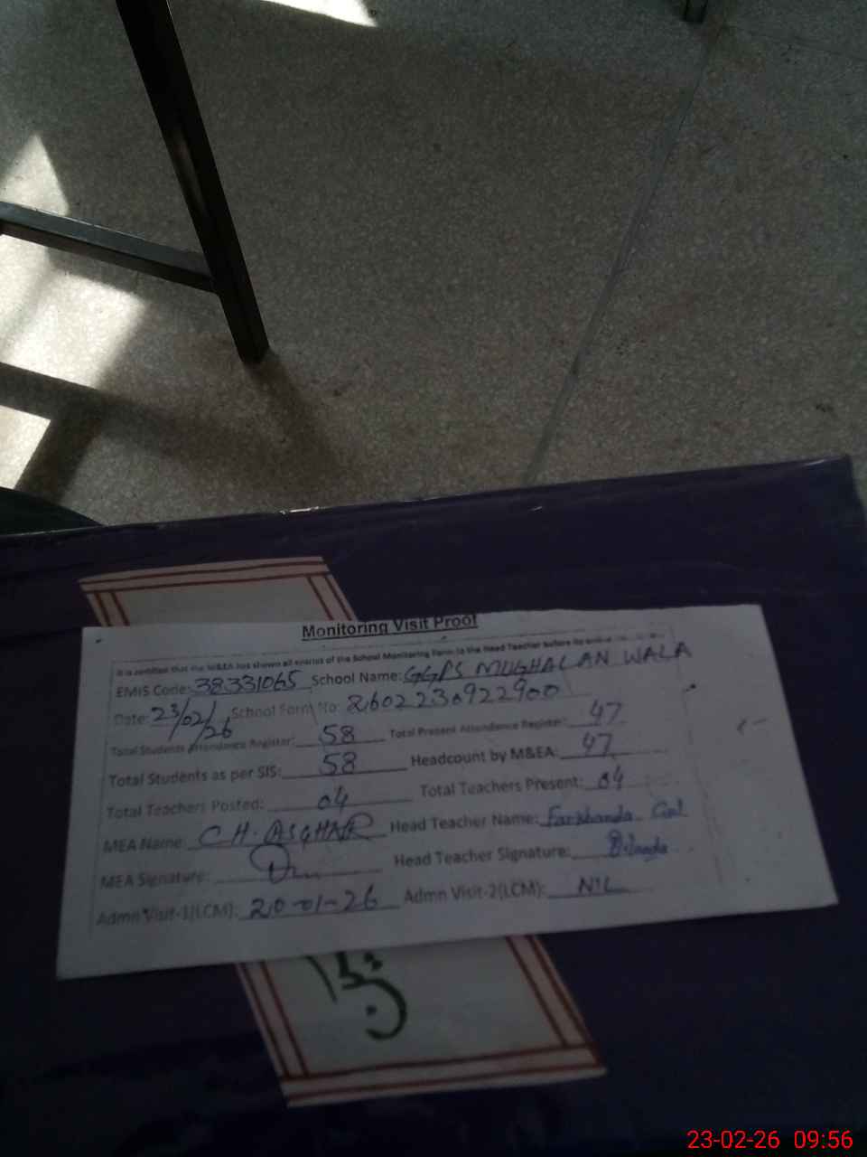 | EMIS Code: 38331065 | Name of School: GGPS MUGHALAN WALA | |||