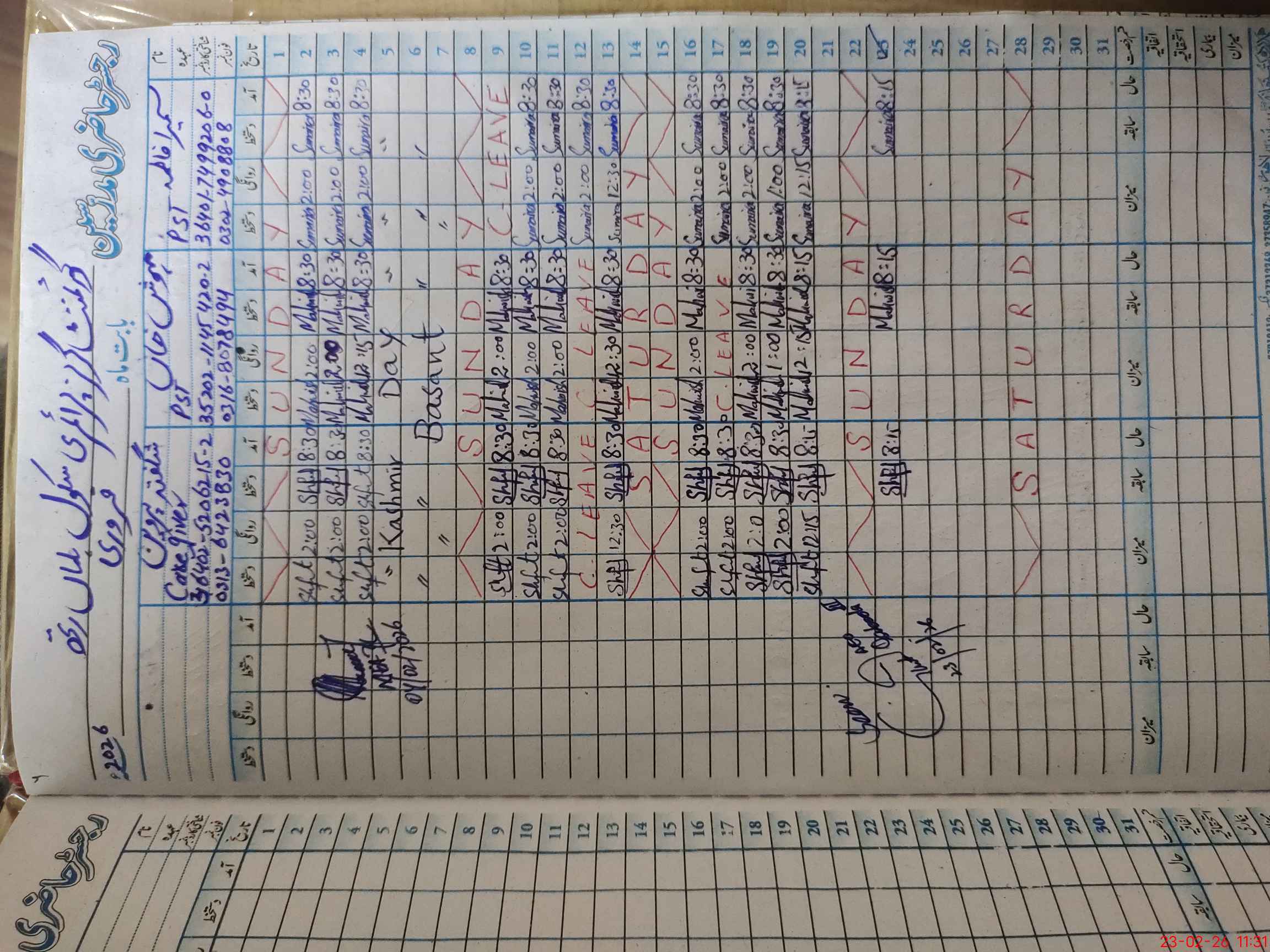 | CNIC | Full Name | Designation | R/C | Absence During Last Calender Month |