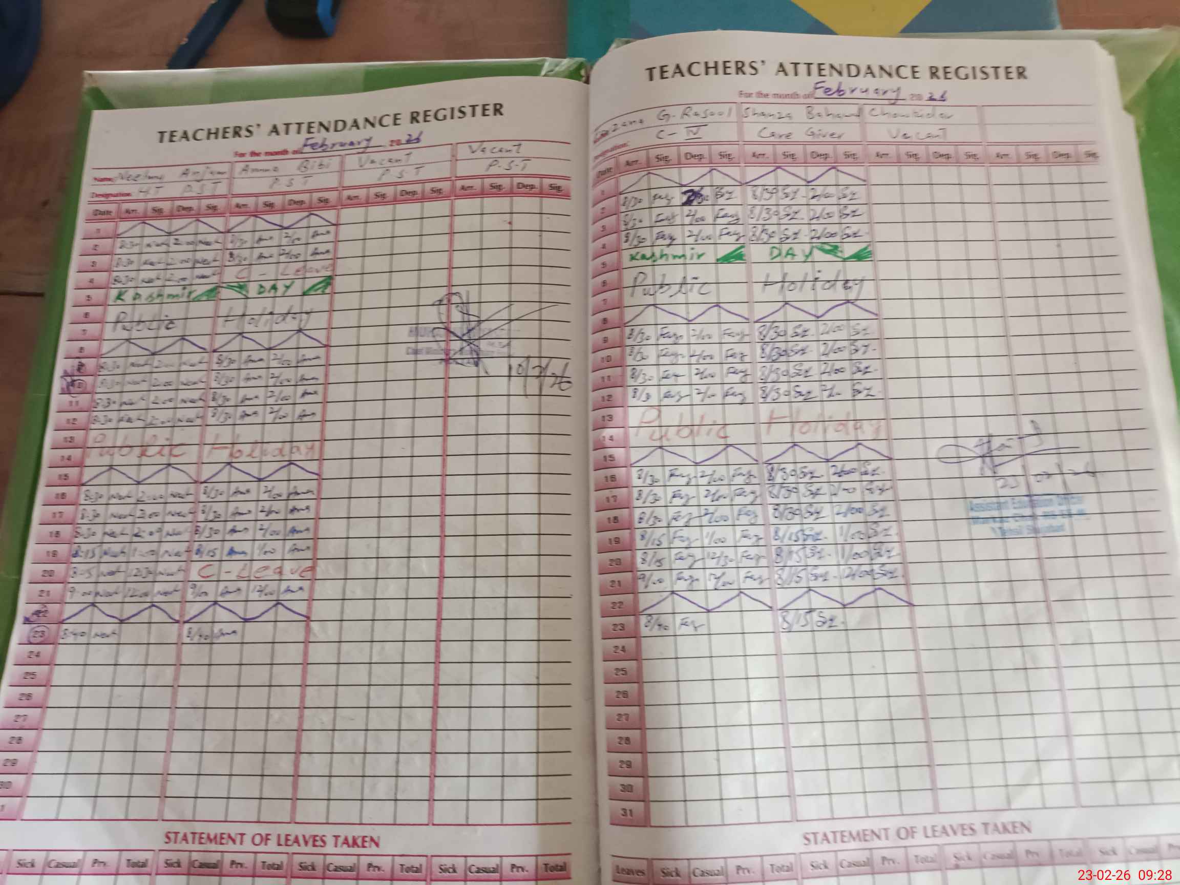 | Leave | Duty | Absent | Maternity | Medical | Ex- Pak |