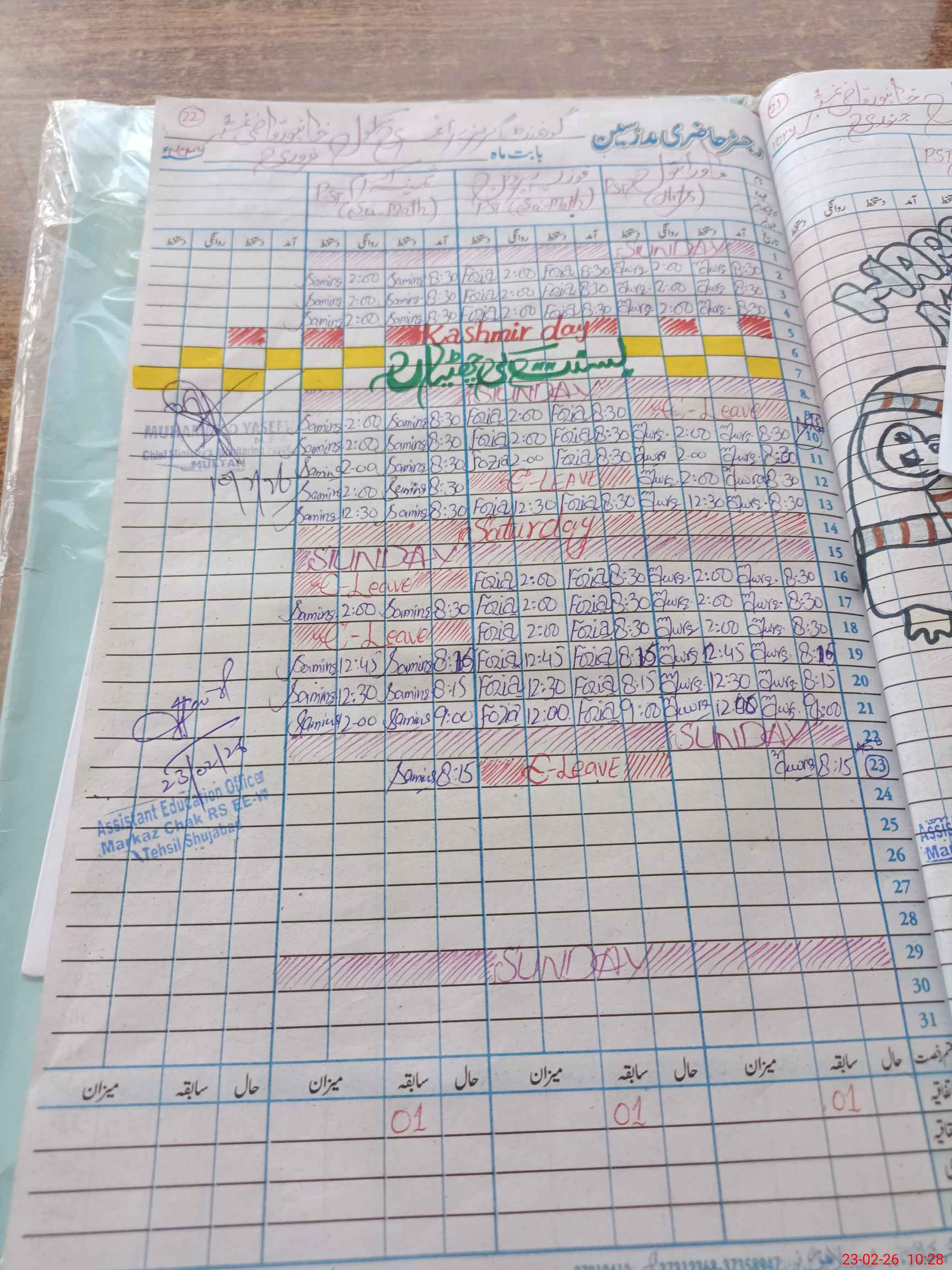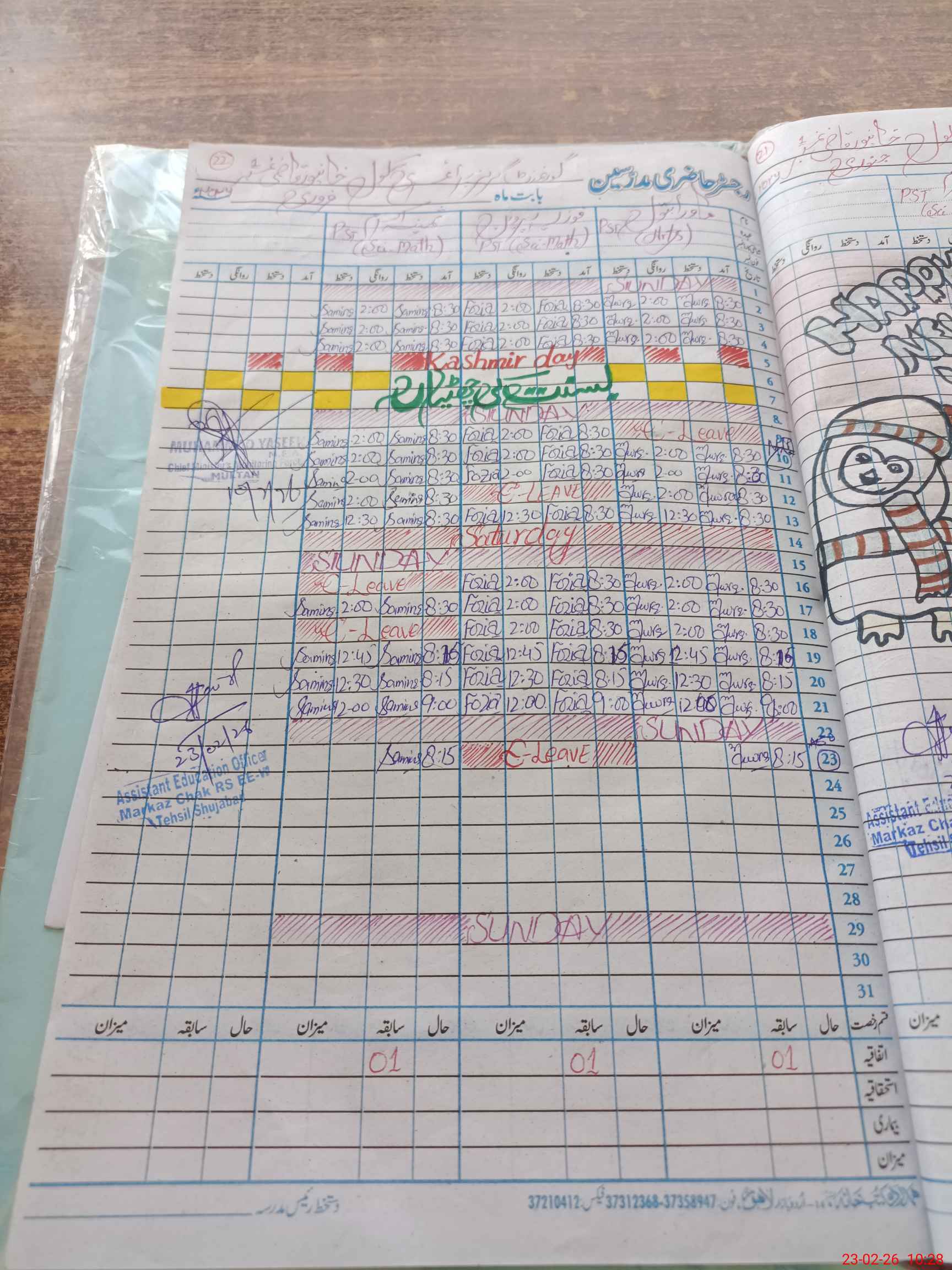 | Attendance Register | Head Teacher | MEA with School | Visit Proof |
