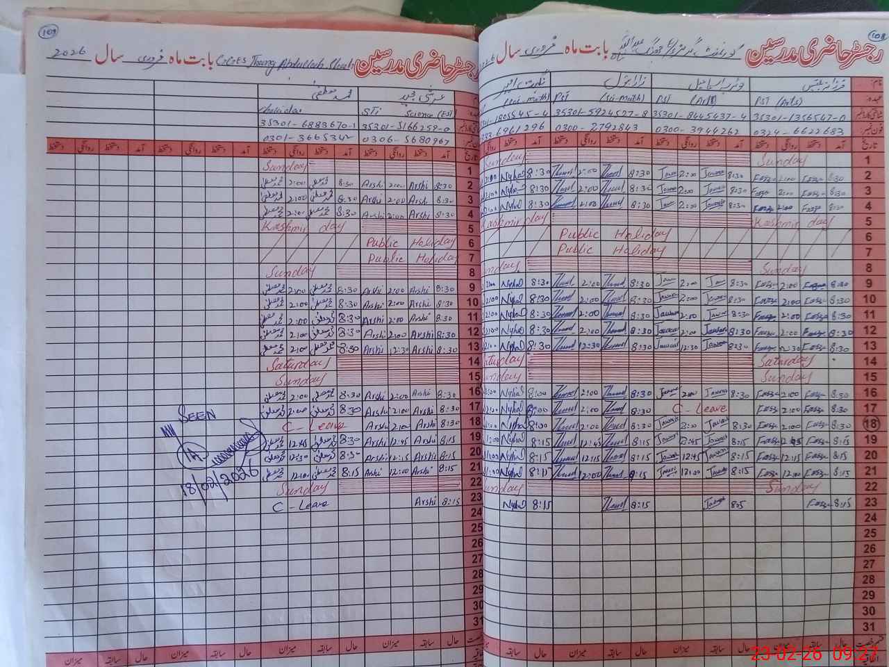 | Name: Fa**** Ba**** Designation: (School Headmaster's/Headmistress's) PST Phone/Cell Number: 03**** |