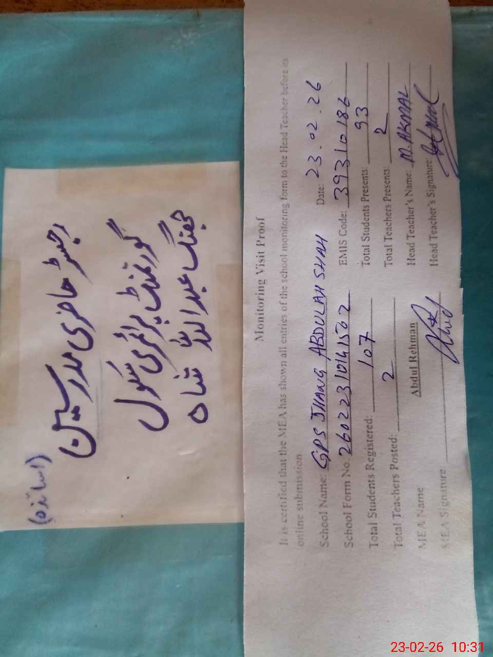 | EMIS Code: 39310186 | Name of School: GPS JHANG ABDULLAH SHAH | |||