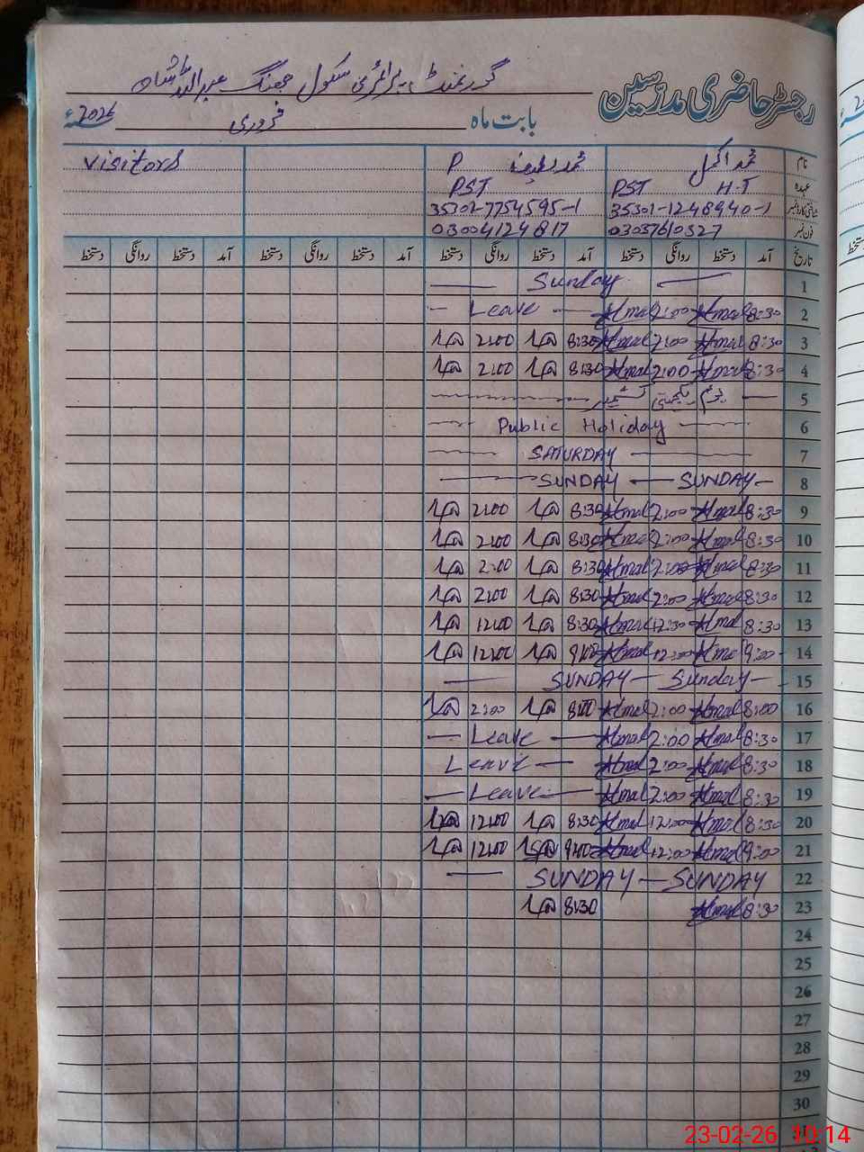 | Name: Mu**** Ak**** Designation: (School Headmaster's/Headmistress's) PST Phone/Cell Number: 03**** |