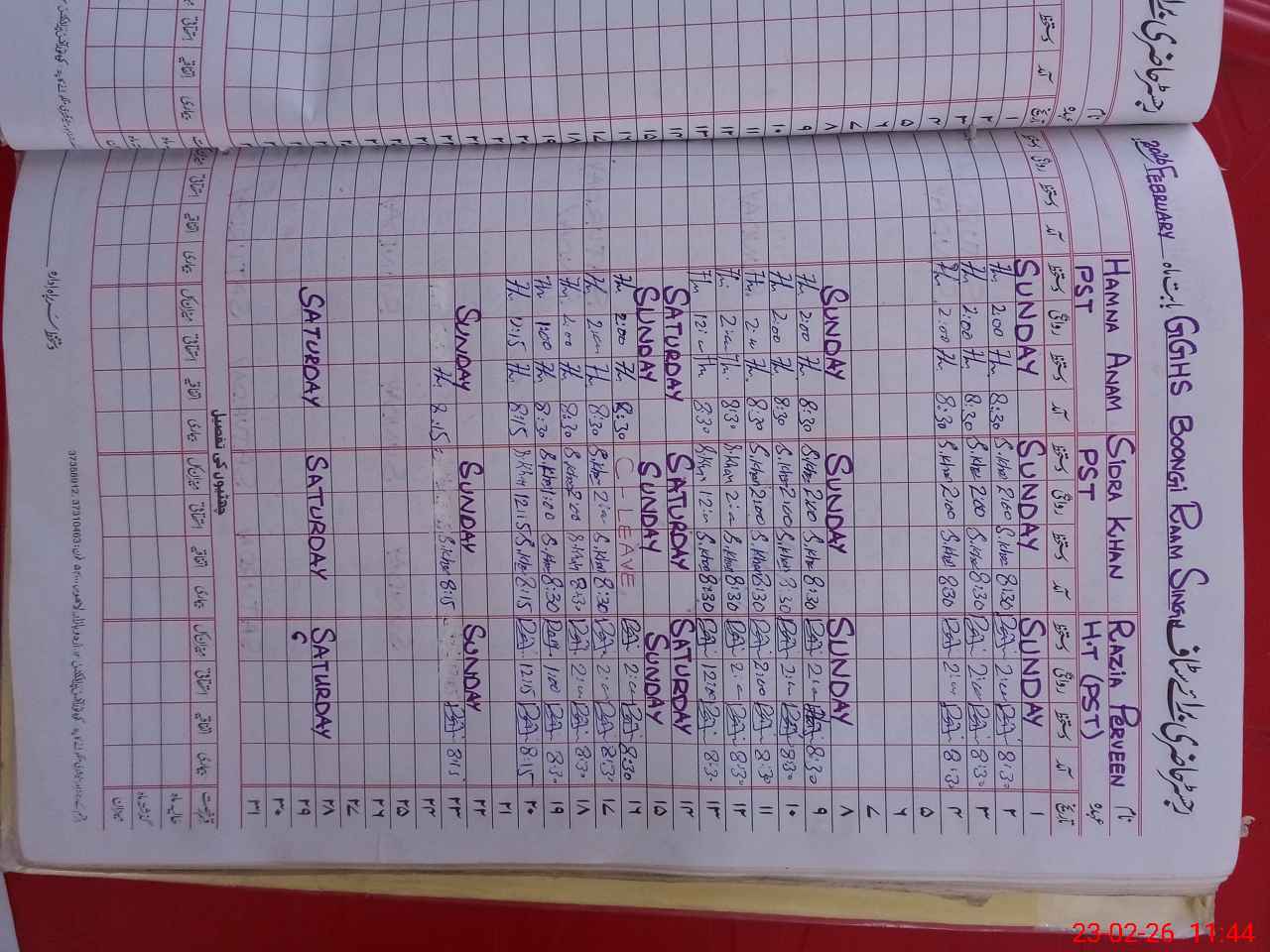 | Leave | Duty | Absent | Maternity | Medical | Ex- Pak |