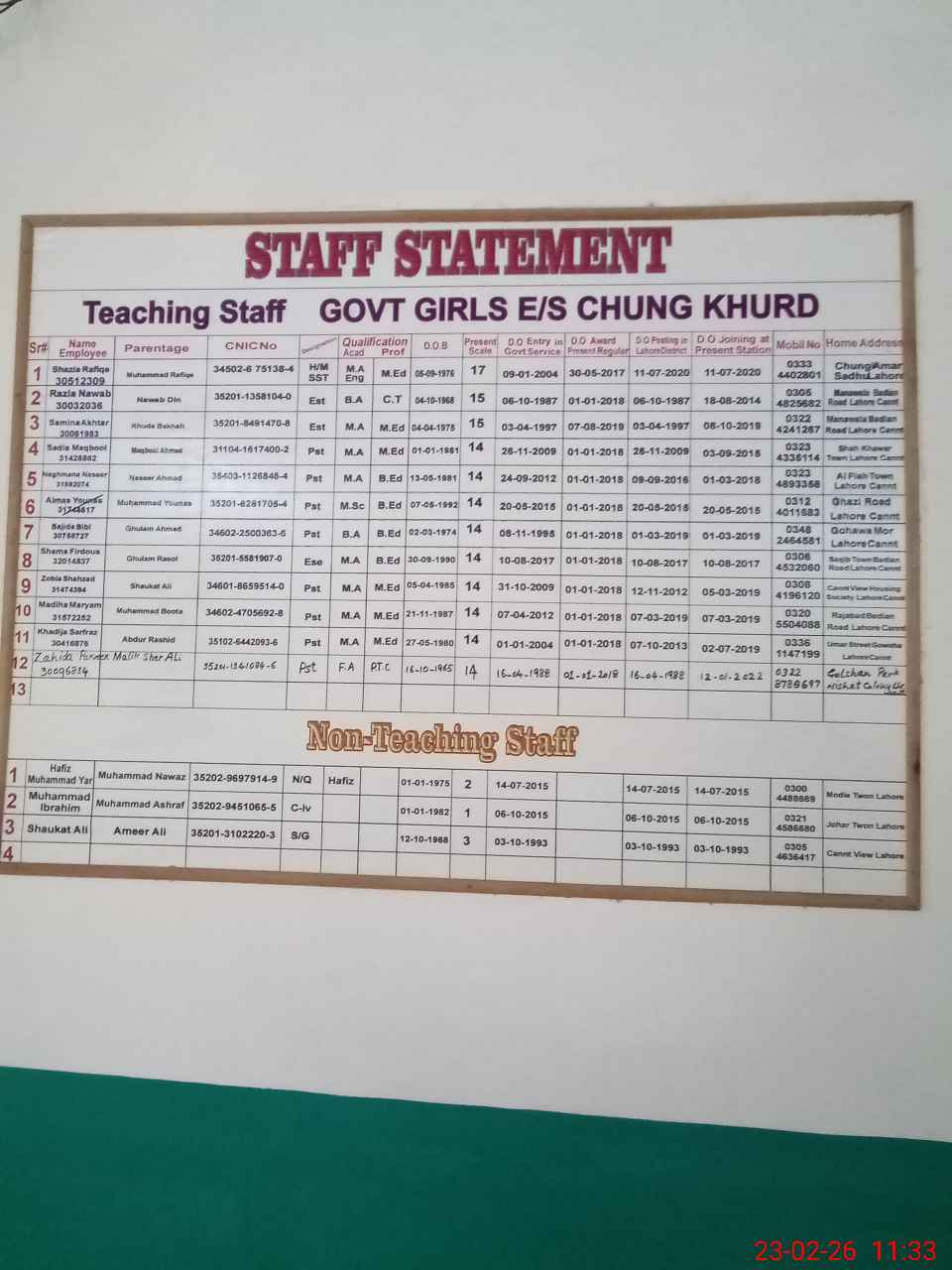 | EMIS Code: 35210917 | Name of School: GGHS CHUNG KHURD (DEFENCE) | |||
