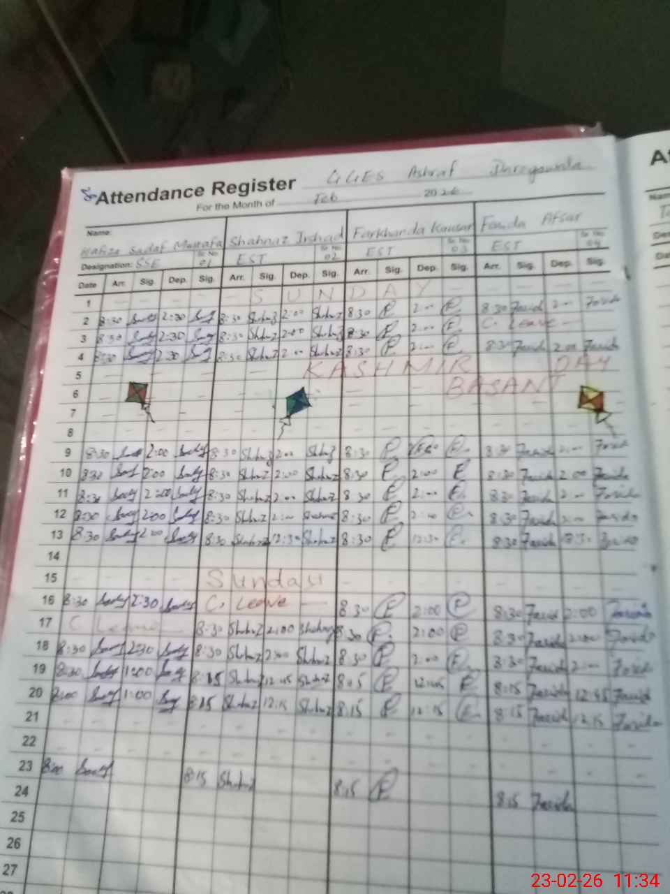 | 35**** | Ab**** Pa**** | PST Arts | Regular | 0 | 0 | 0 | 0 | 0 | 0 | 0 | 0 | 0 | Casual |