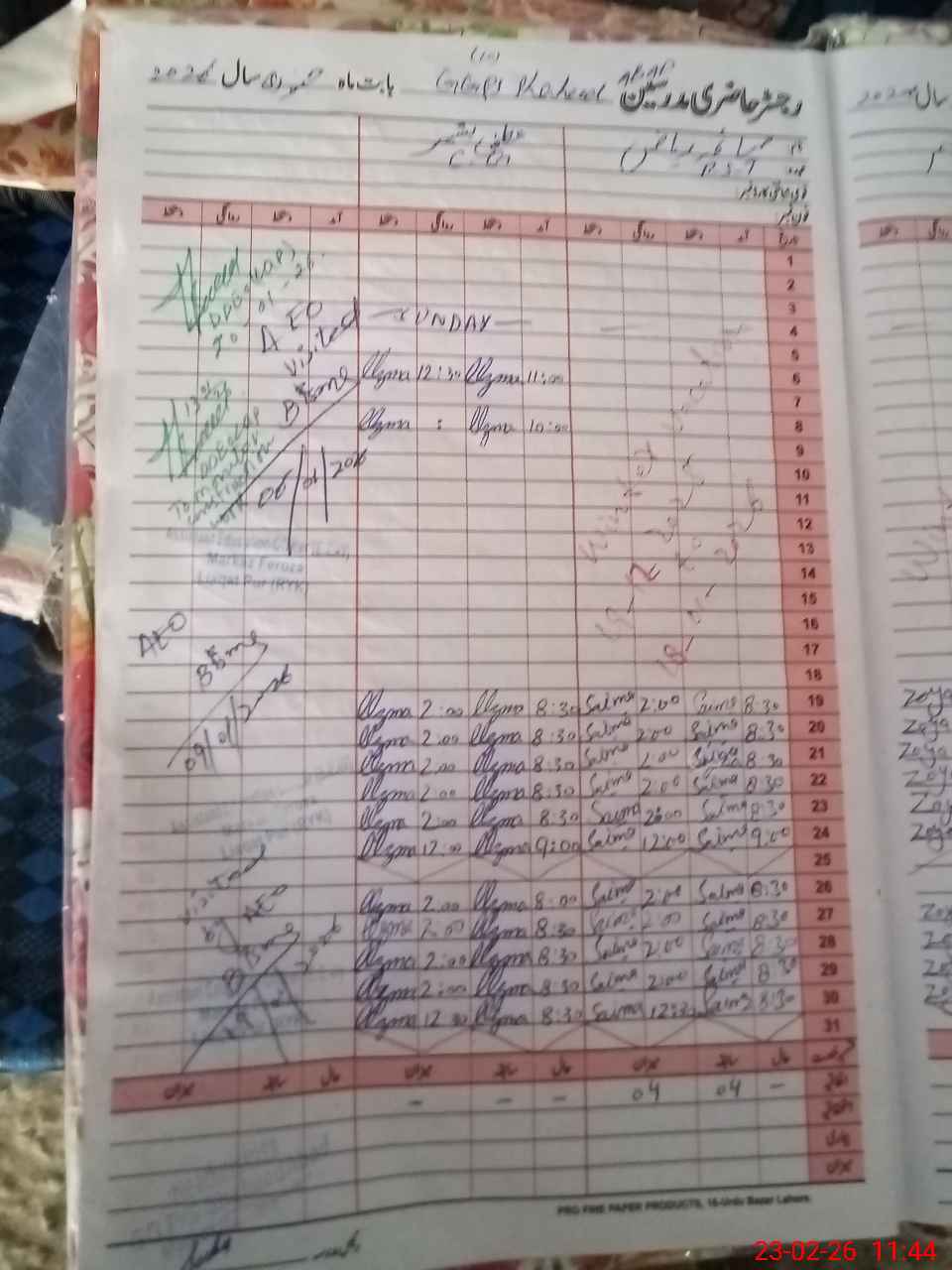 | CNIC | Full Name | Designation | R/C | Absence During Last Calender Month |