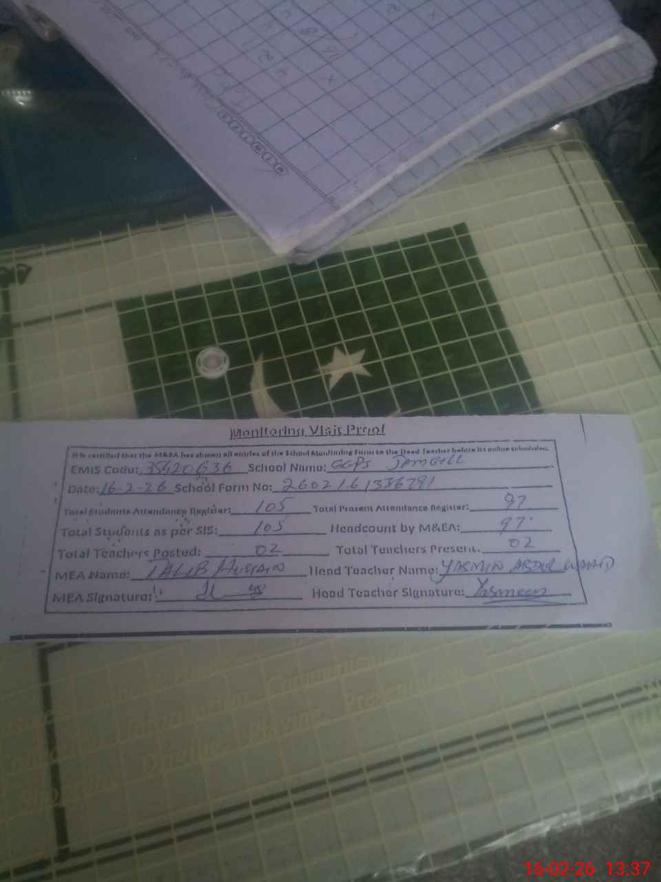 | EMIS Code: 35420636 | Name of School: GGPS JAMGILL | |||