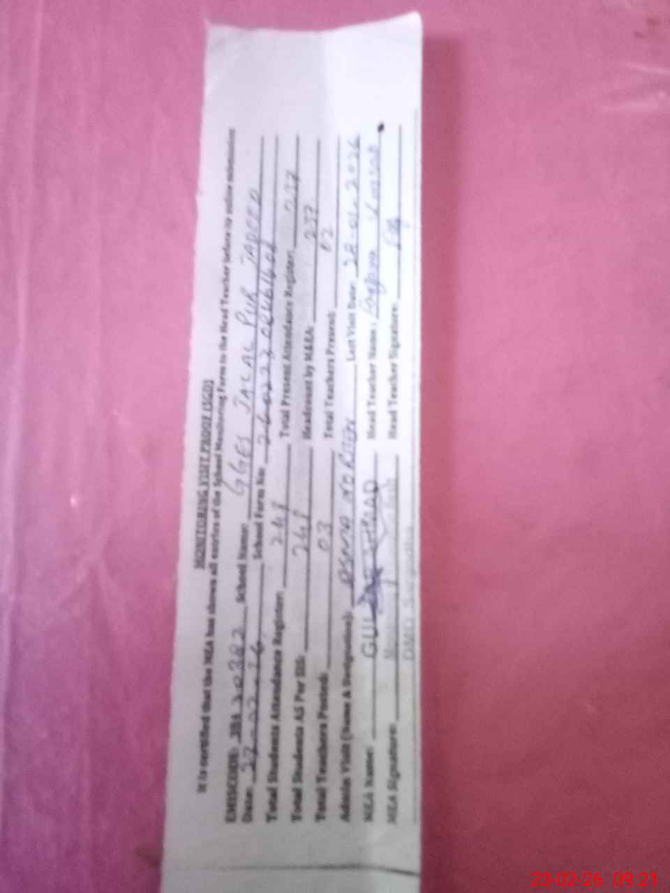 | Attendance Register | Head Teacher | MEA with School | Visit Proof |